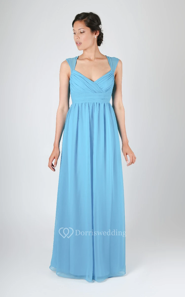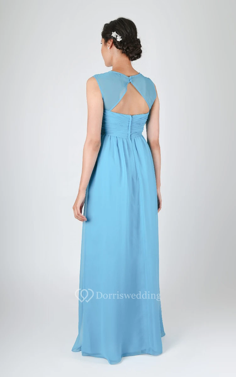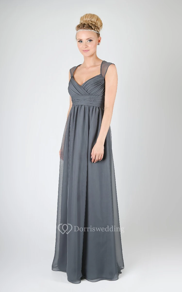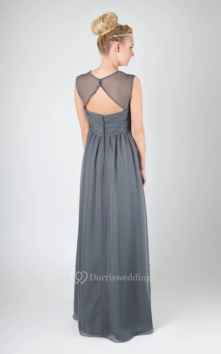 A-Line Gown With Has Illusion Cap-Sleeves And Back Keyhole
