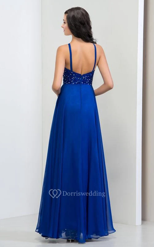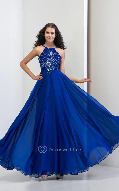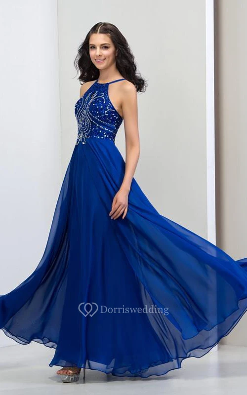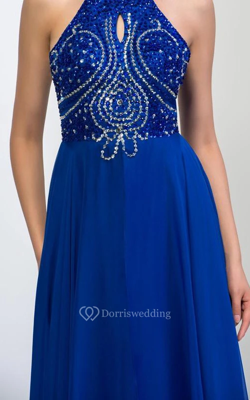 A-Line Halter Sequins Long Prom Dress