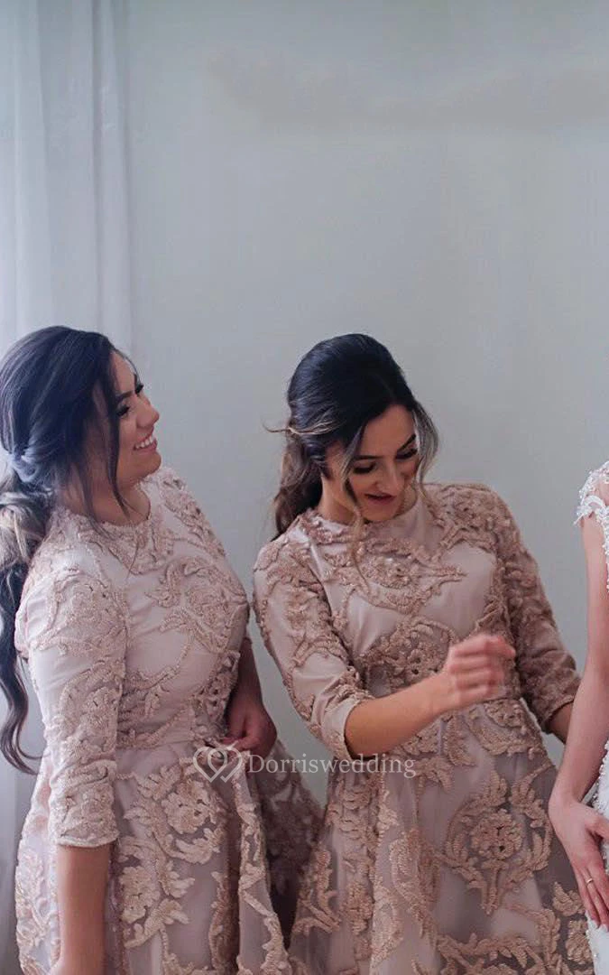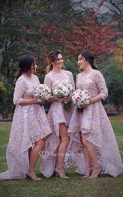 A-line High-low Half Sleeve Pleats Appliques Zipper Lace Dress