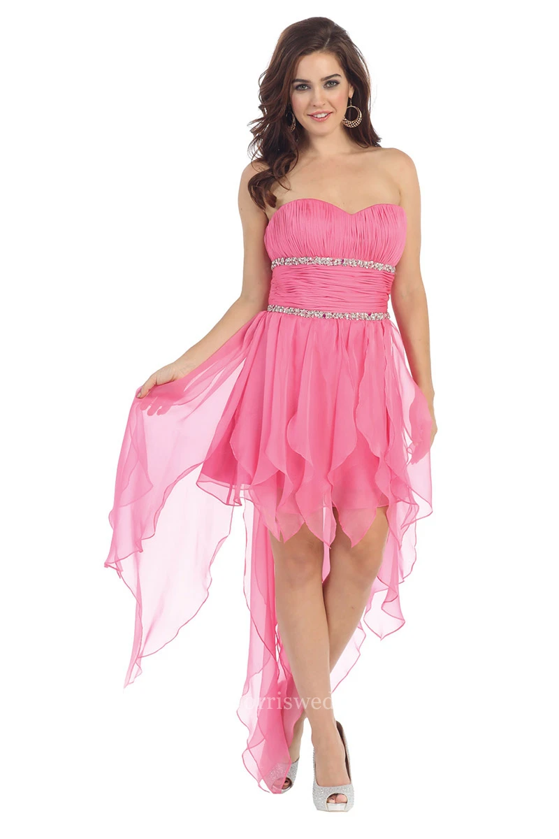 A-Line High-Low Sweetheart Sleeveless Chiffon Dress With Beading And Pleats