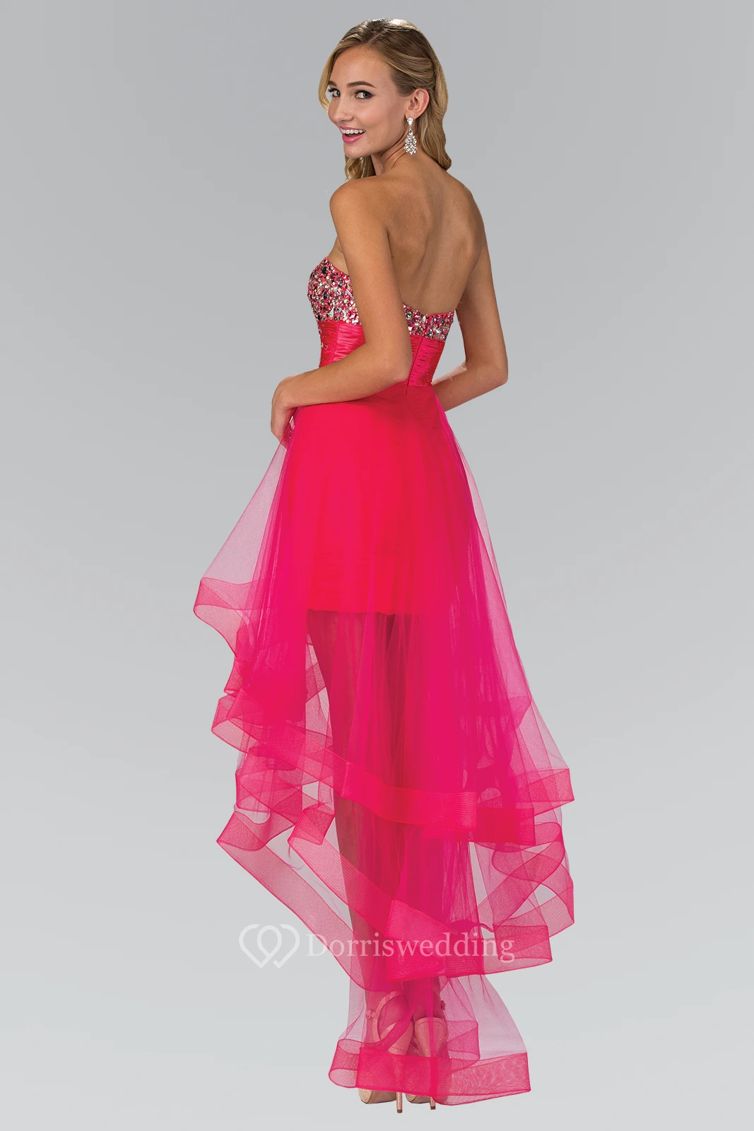A-Line High-Low Sweetheart Sleeveless Tulle Backless Dress With Beading And Tiers