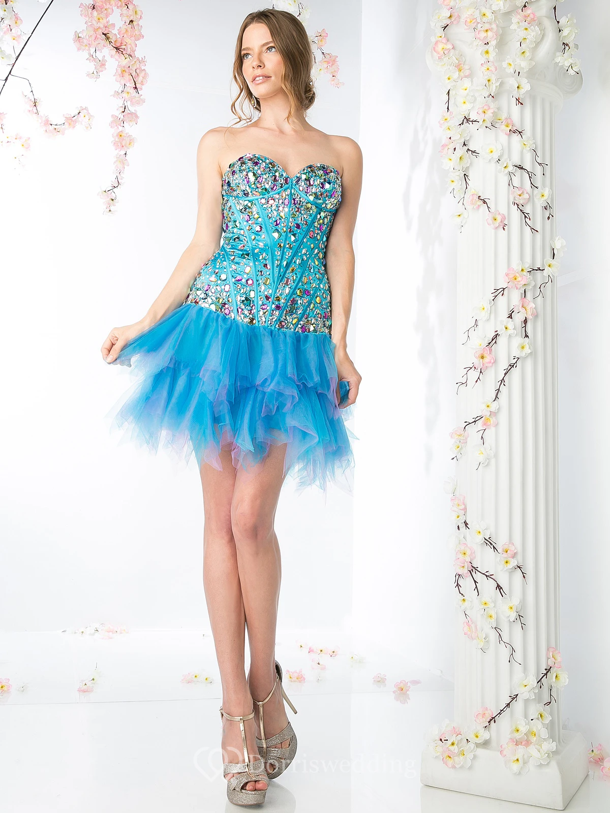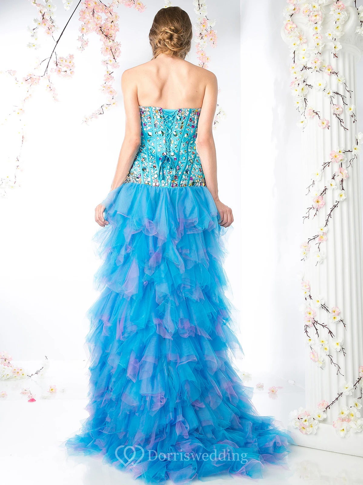 A-Line High-Low Sweetheart Tulle Corset Back Dress With Beading And Tiers