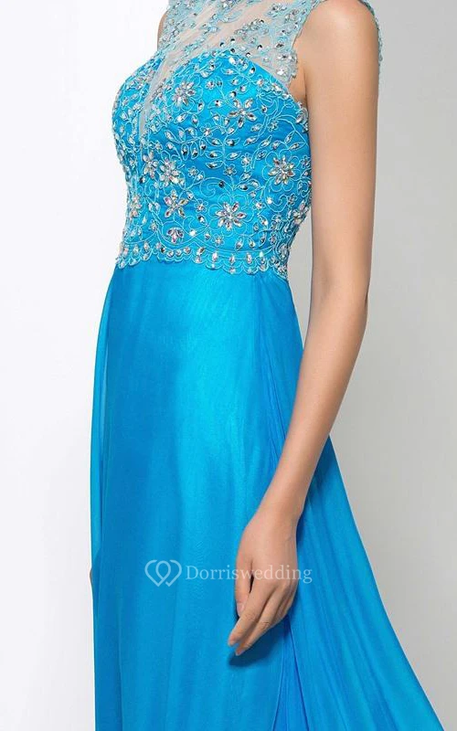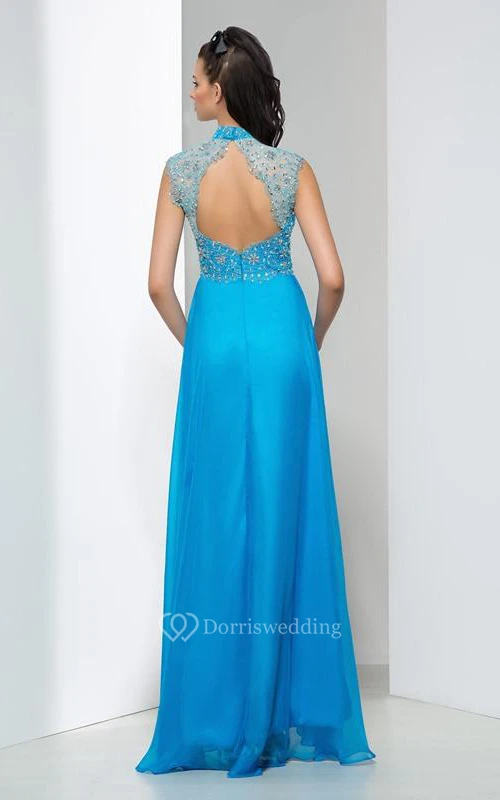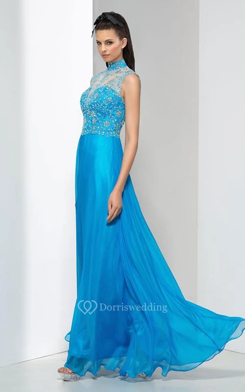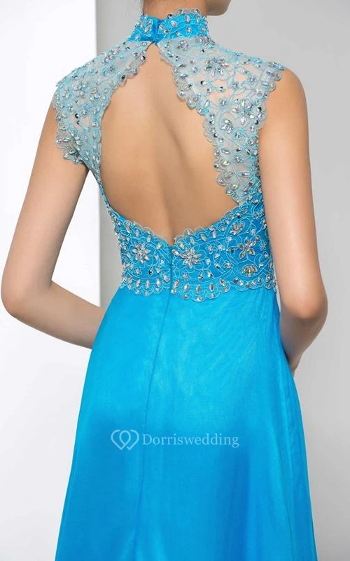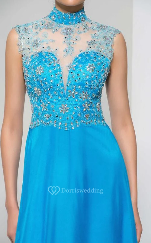 A-Line High Neck Crystal Appliques Hollow Prom Dress