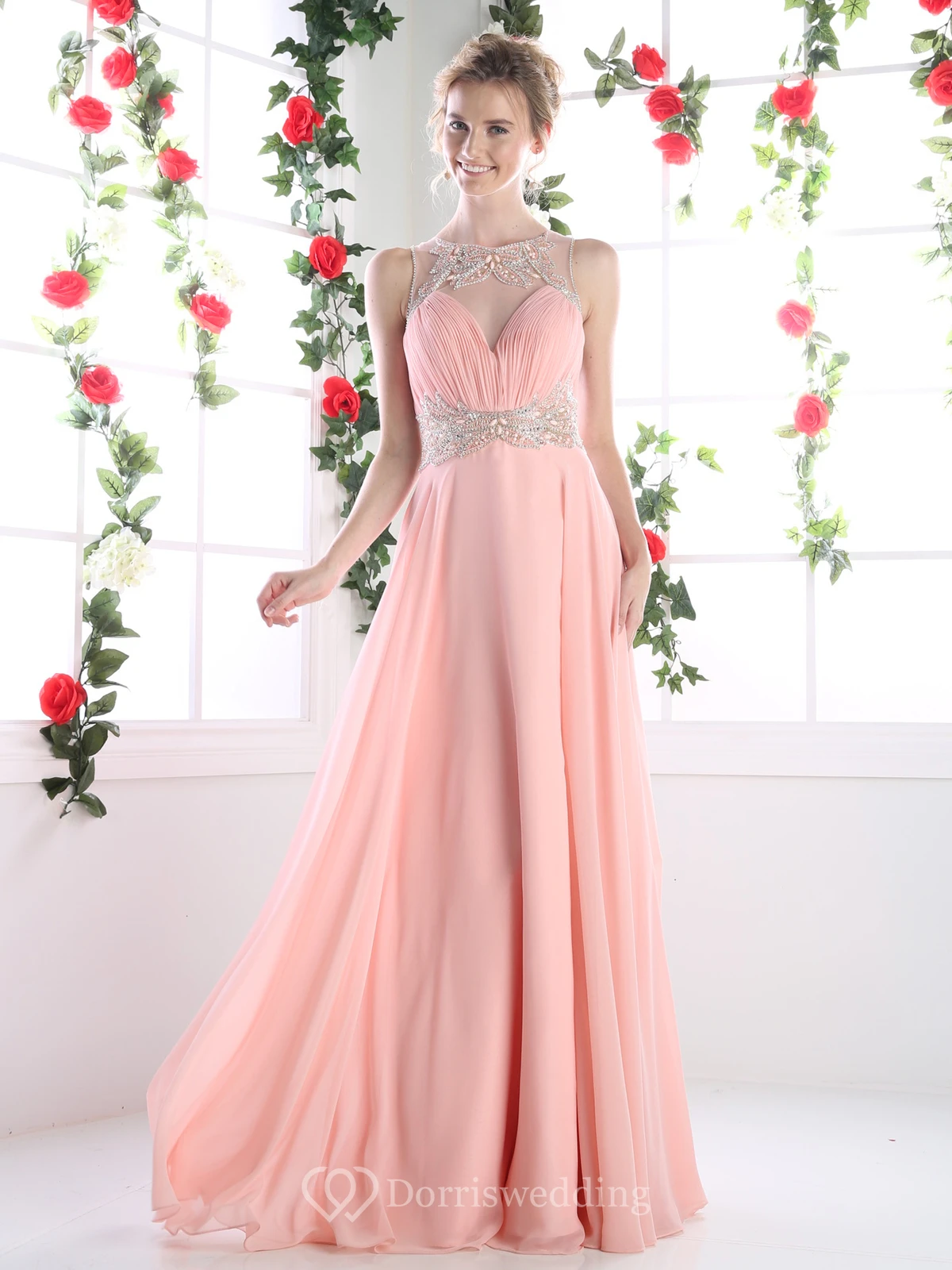 A-Line Jewel-Neck Sleeveless Chiffon Keyhole Dress With Ruching And Beading