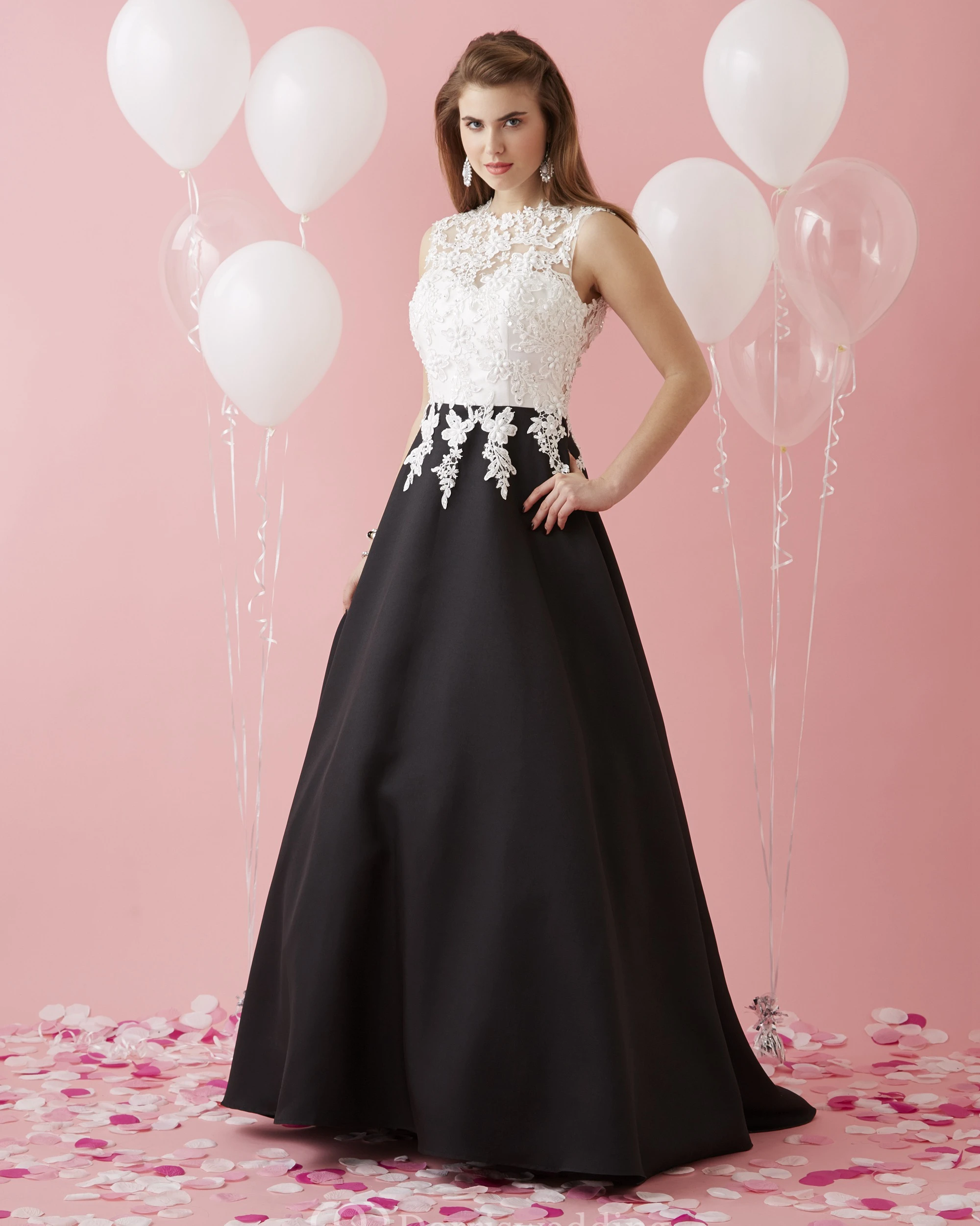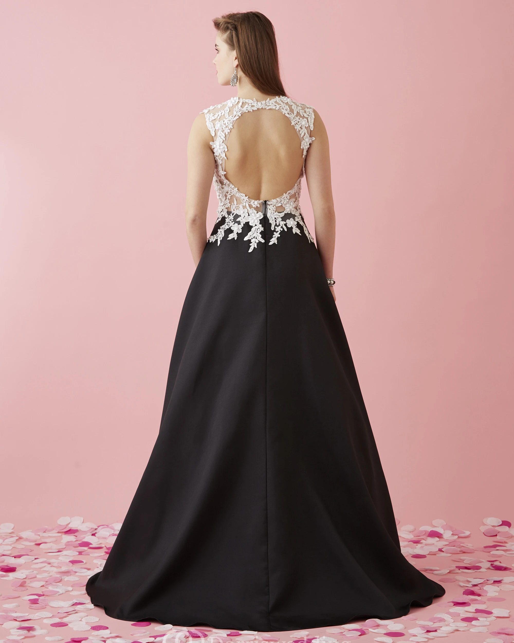 • Hemline/Train: Floor-length, Sweep/Brush Train