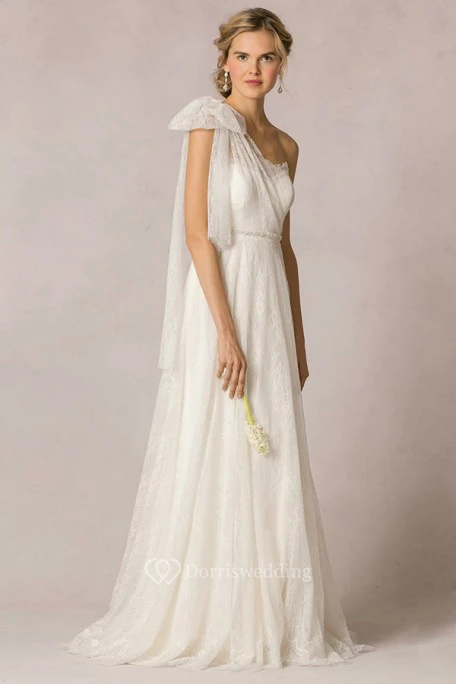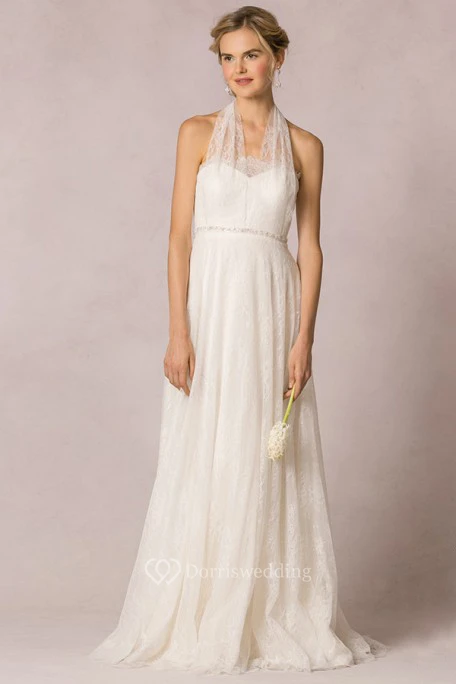 A-Line Jeweled Floor-Length Strapless Lace Wedding Dress