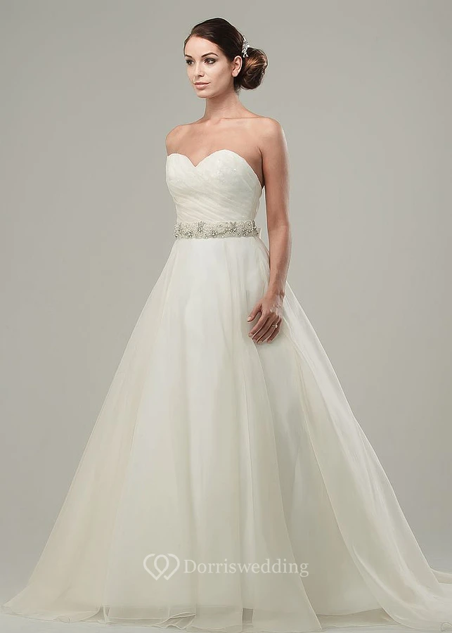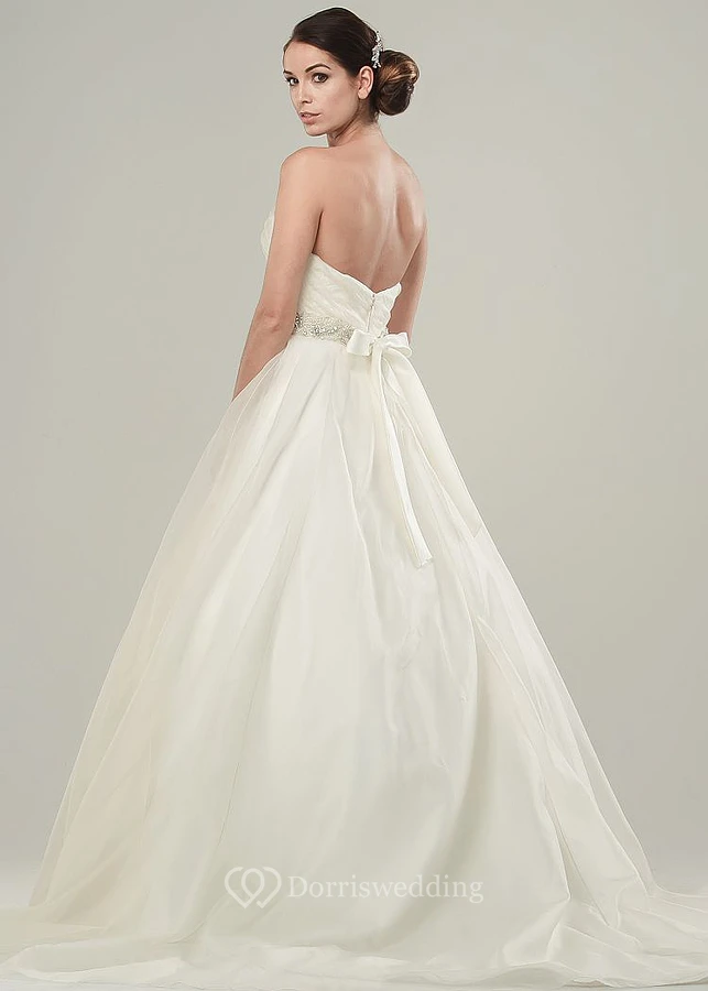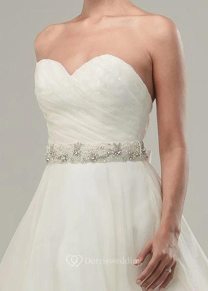A-Line Jeweled Maxi Sweetheart Tulle&Satin Wedding Dress With Criss Cross And Bow