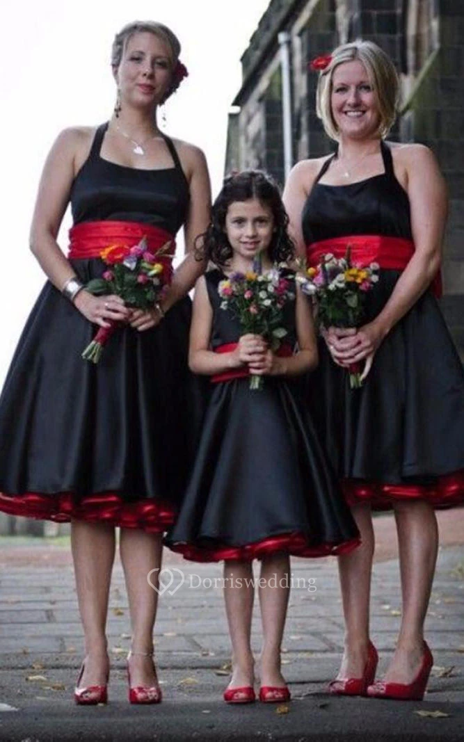 A-line Knee-Length Halter Sleeveless Satin Dress