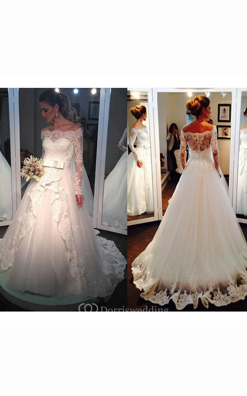 A-Line Knee-Length Long Sleeve Keyhole Tulle Dress