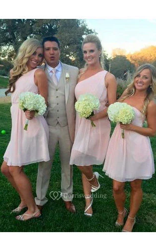 A-line Knee-Length One-shoulder Sleeveless Pleats Chiffon Dress