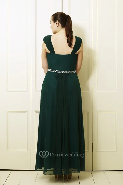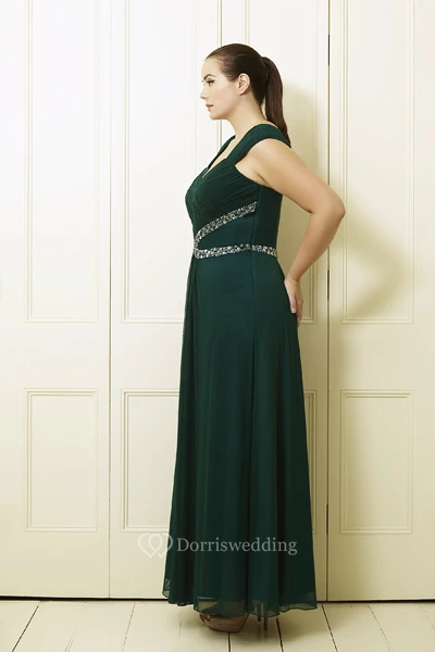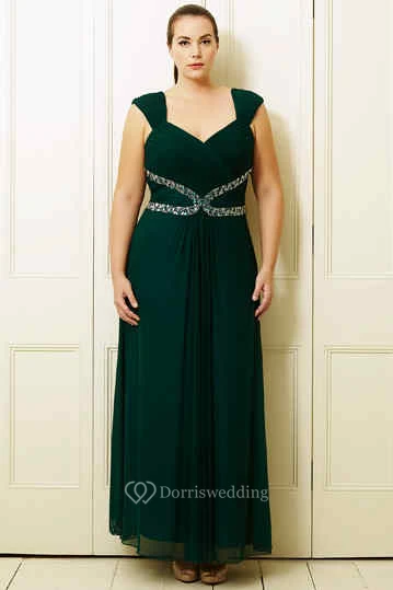 A-Line Knee-Length Sleeveless Beaded Queen-Anne Chiffon Plus Size Prom Dress With Ruching