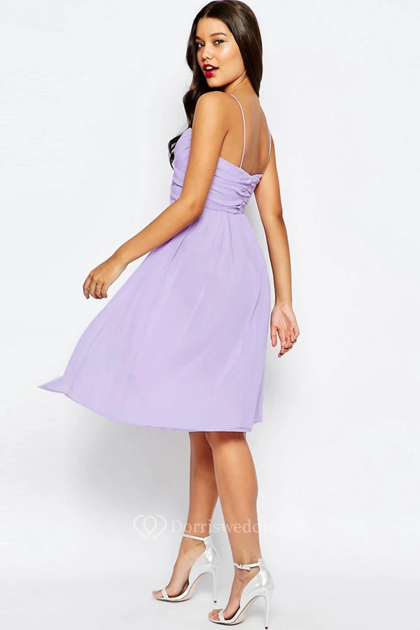 A-Line Knee-Length Sleeveless Pleated Spaghetti Chiffon Bridesmaid Dress