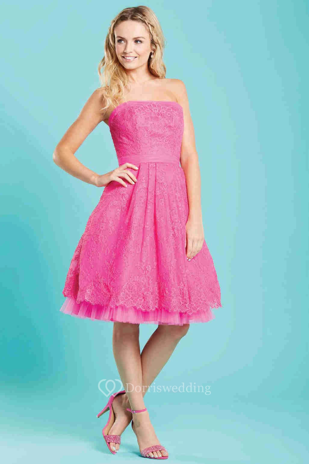 A-Line Knee-Length Strapless Lace&Tulle Bridesmaid Dress With Tiers And Zipper