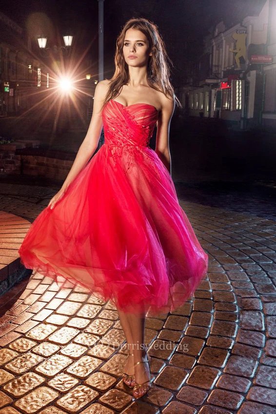 • Hemline/Train: Tea-length