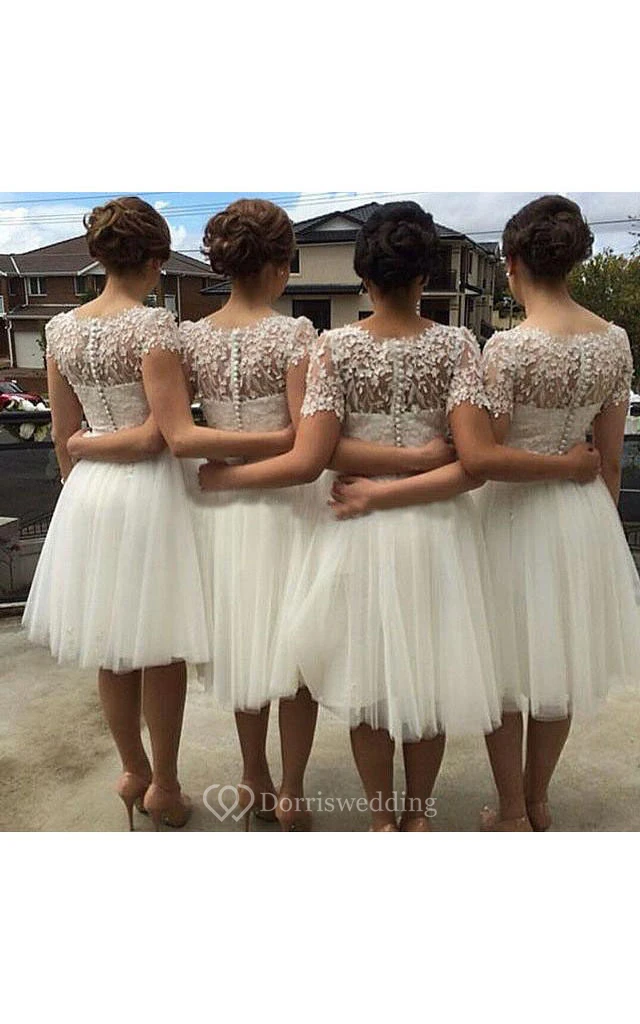 A-line Knee-length Tulle Lace Dress with Pleats and Appliques