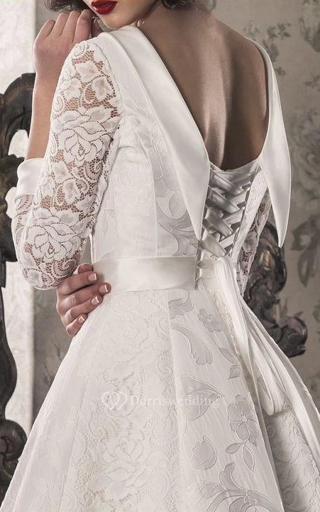 A-Line Lace Satin Weddig Dress With Lace-Up Back