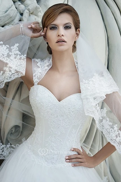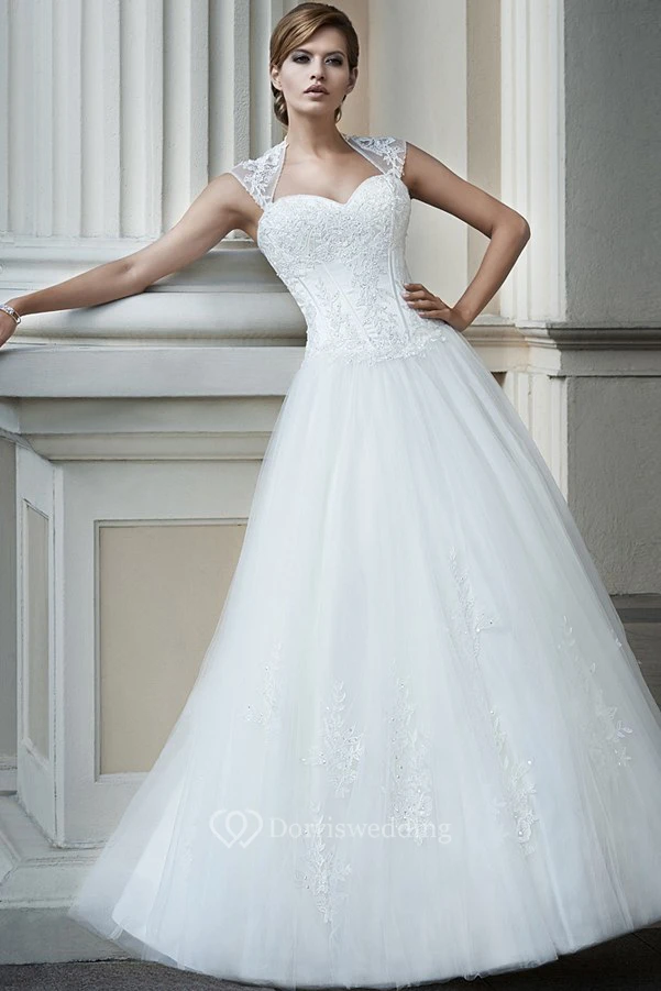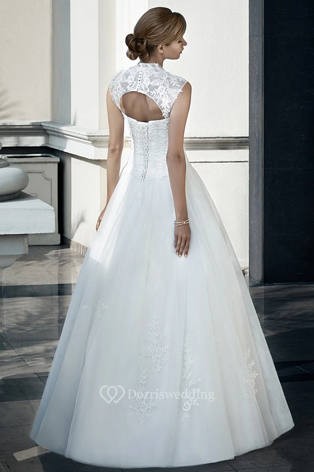 A-Line Long Appliqued Queen-Anne Tulle&Lace Wedding Dress