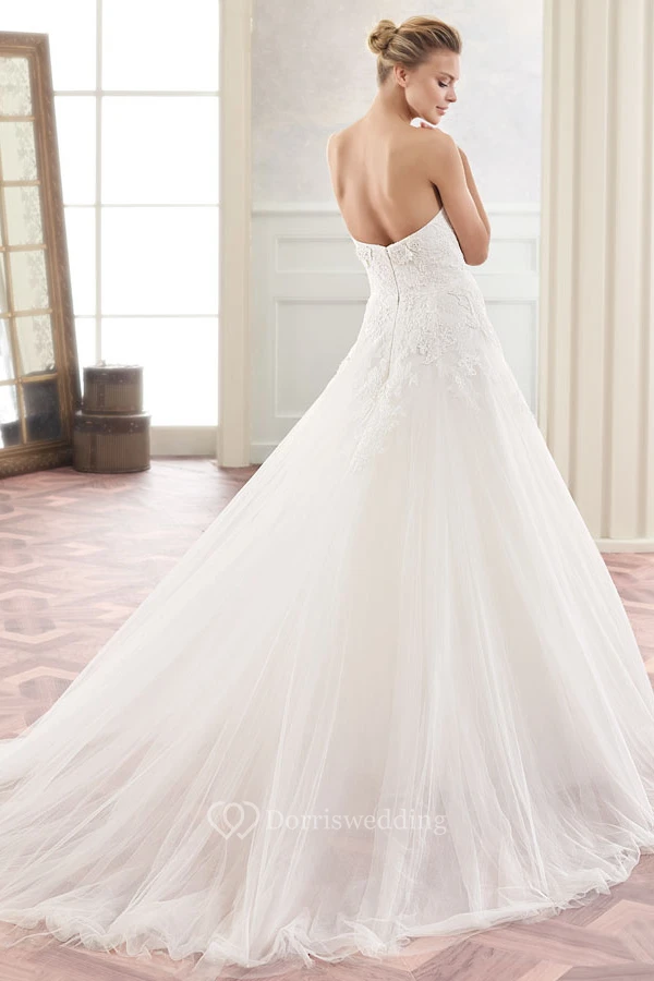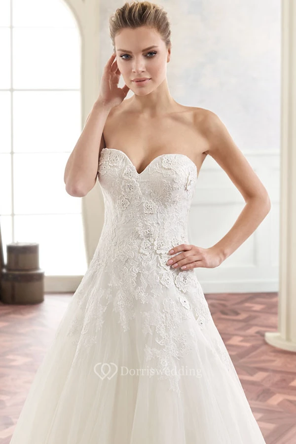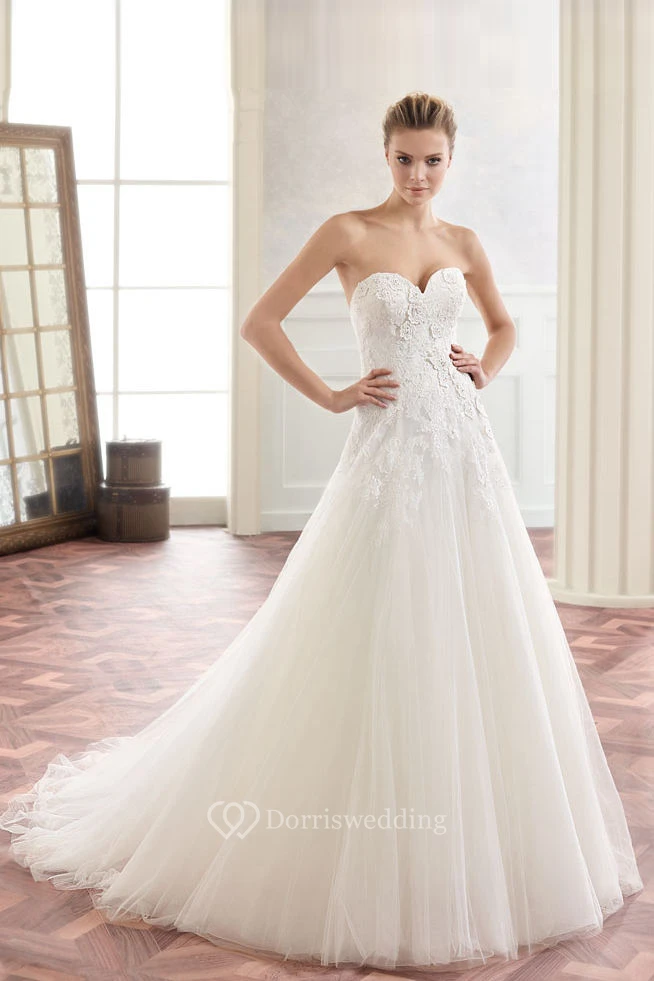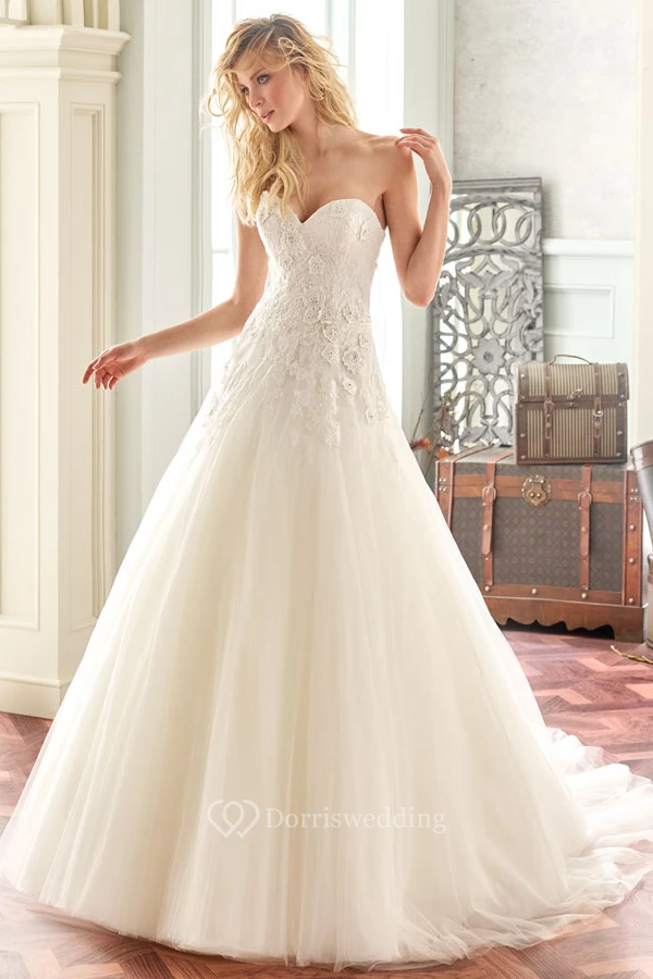 A-Line Long Appliqued Sweetheart Sleeveless Tulle Wedding Dress