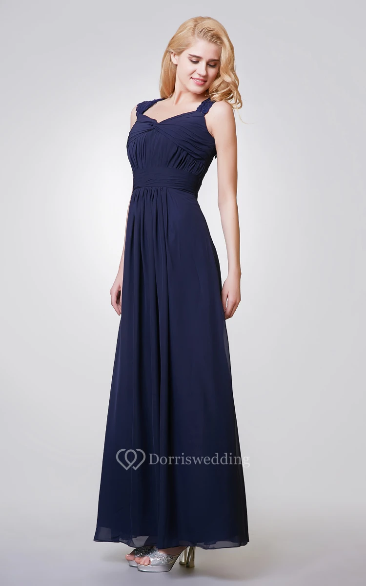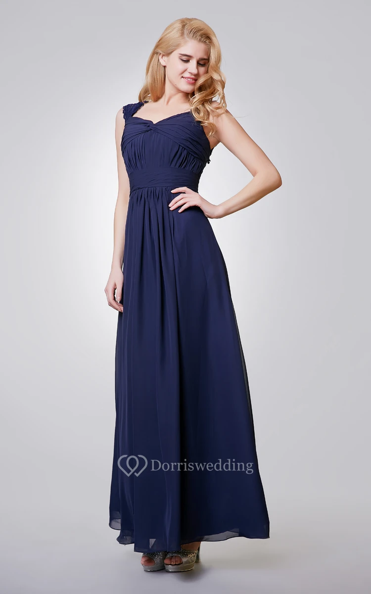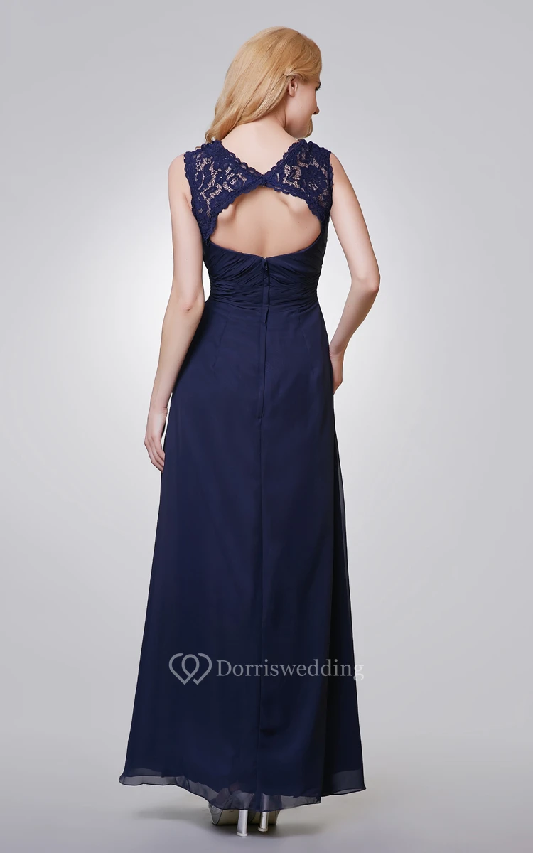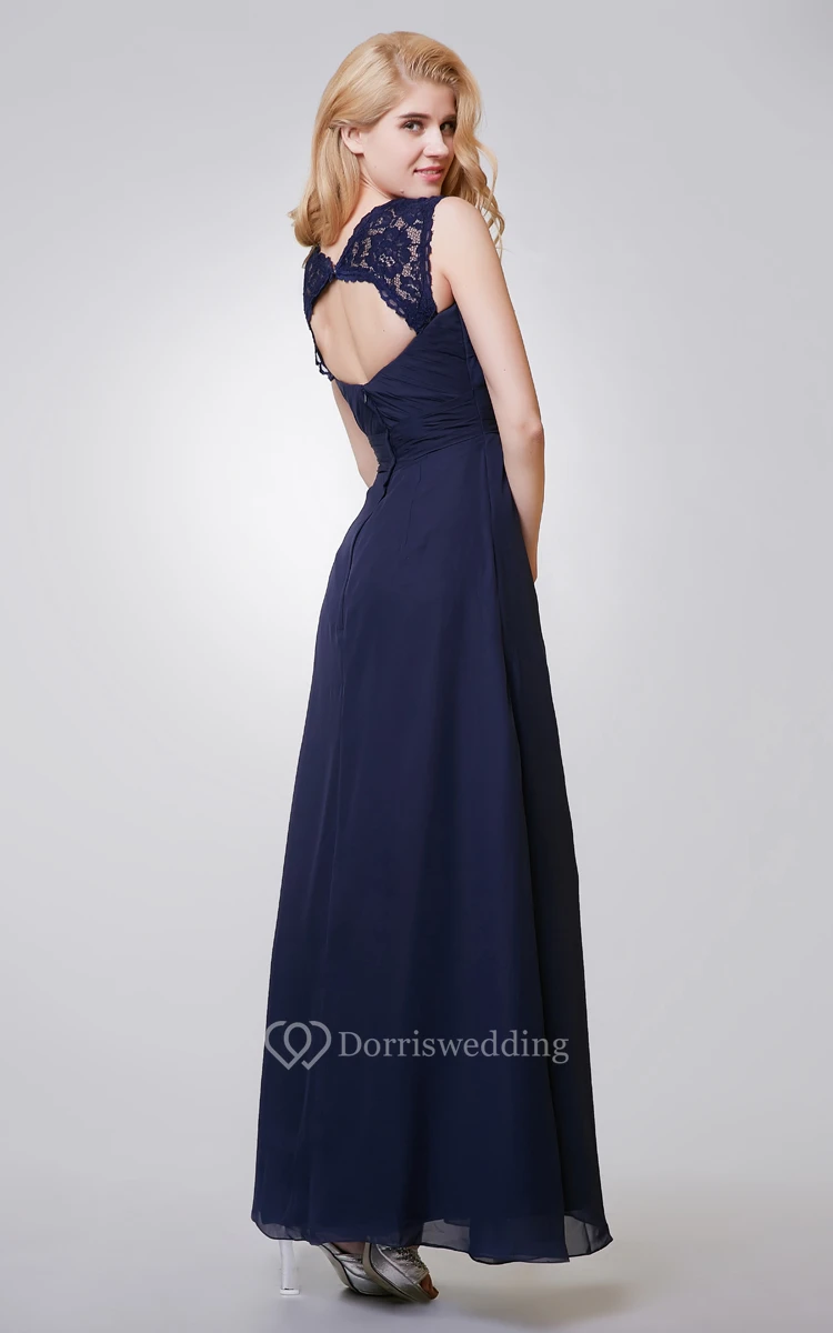 A-Line Long Chiffon Ruched Dress With Key-hole