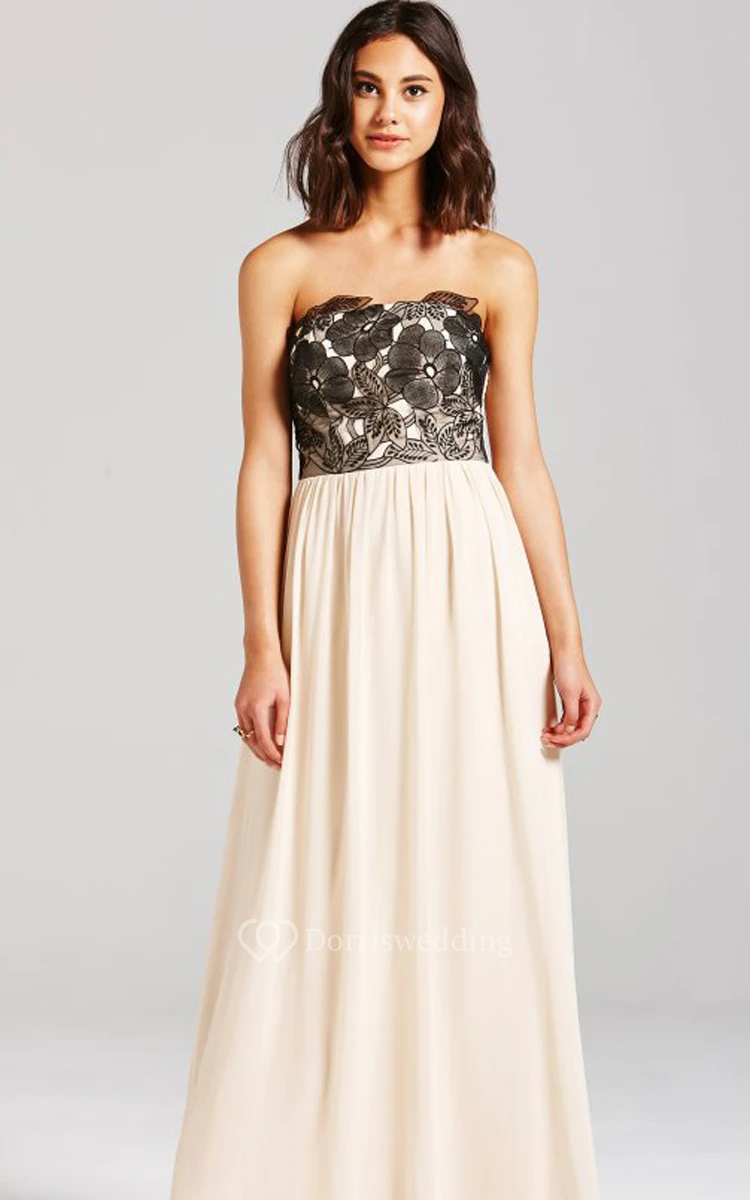 A-Line Long Dress With Black Embroidery Bodice