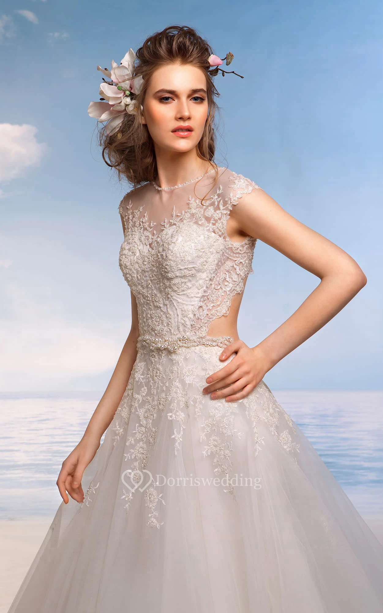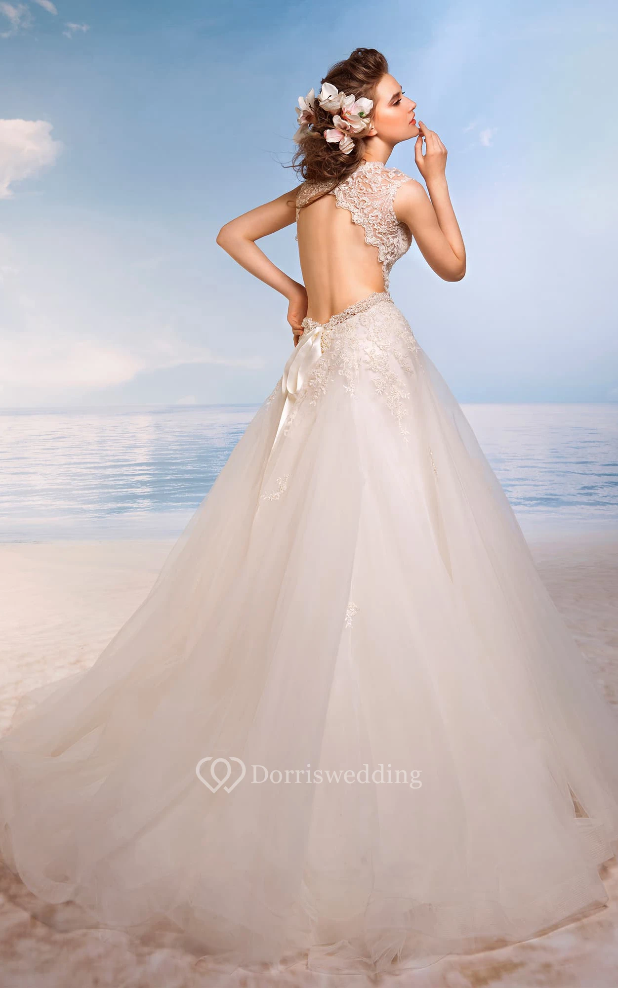 • Hemline/Train: Floor-length, Sweep/Brush Train