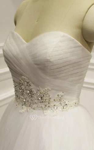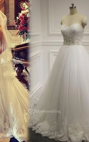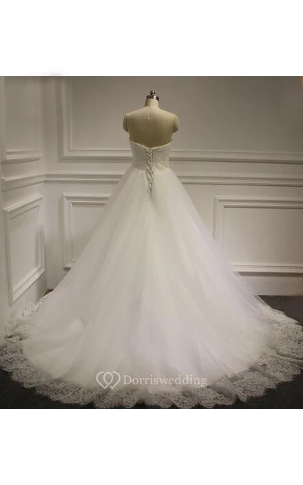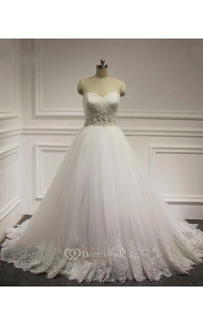 A-Line Long Off-The-Shoulder One-Shoulder Straps Sweetheart Sleeveless Beading Lace-Up Back Straps Tulle Lace Satin Dress