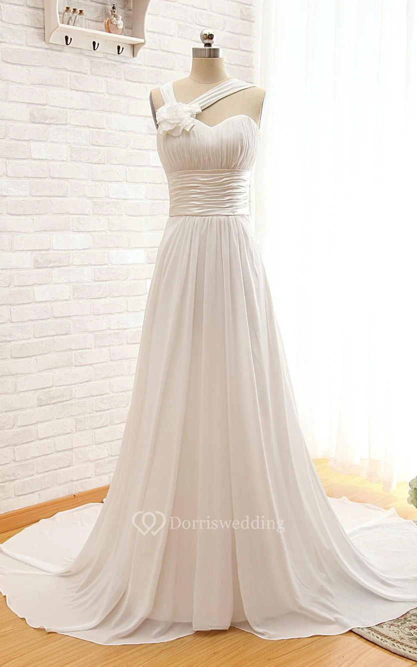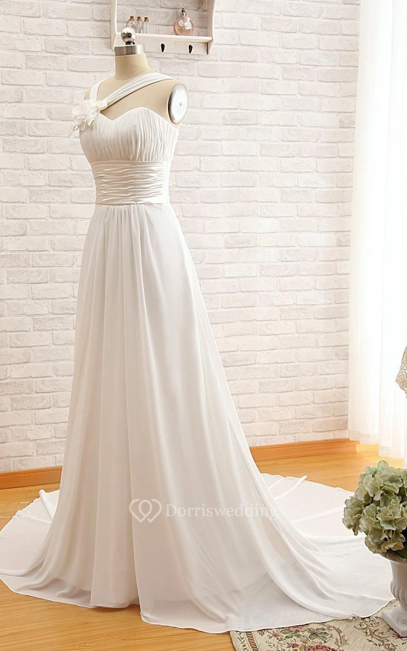 A-Line Long Off-The-Shoulder Sweetheart Sleeveless Sash Jacket Keyhole Chiffon Dress