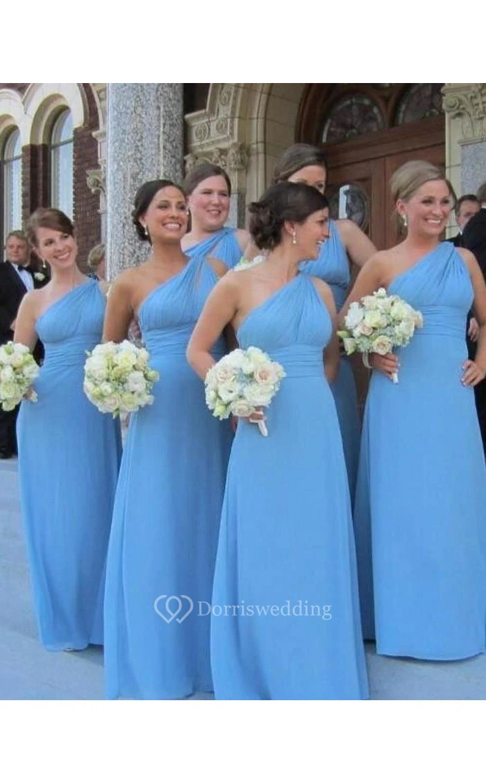 A-line Long One-shoulder Sleeveless Pleated Chiffon Dress