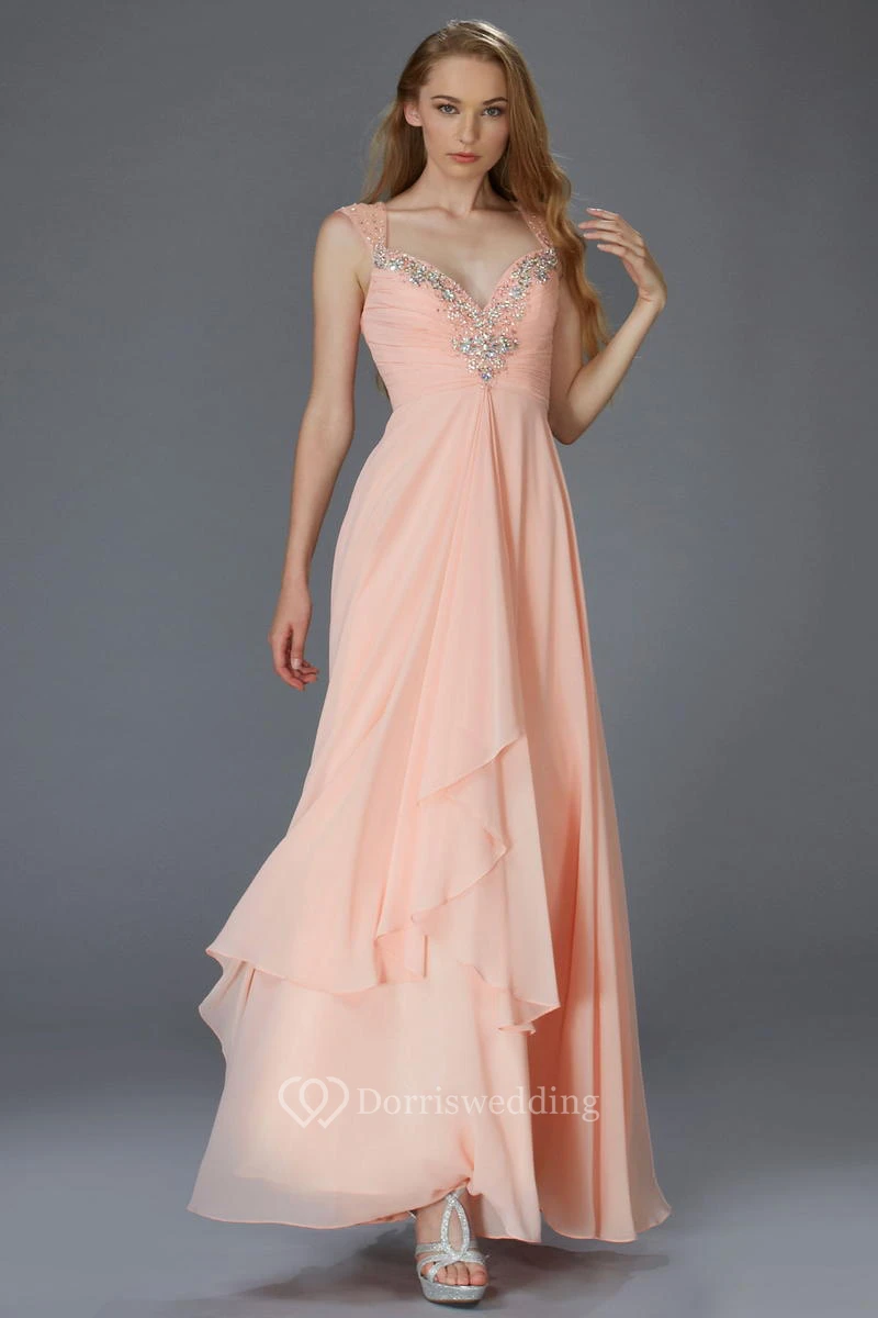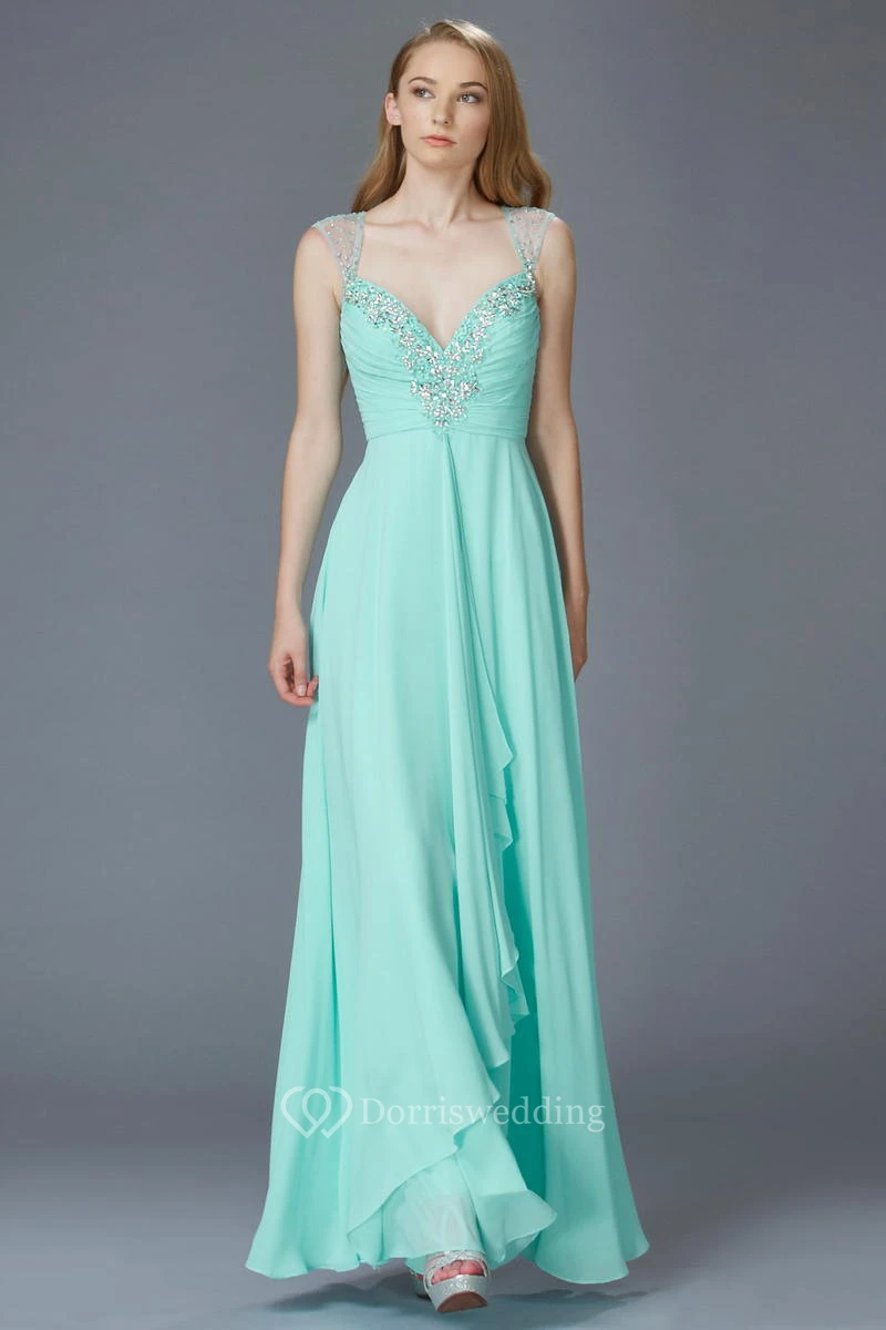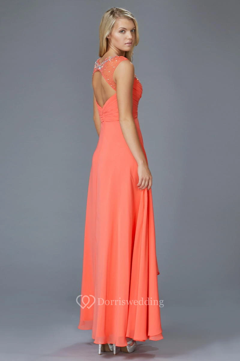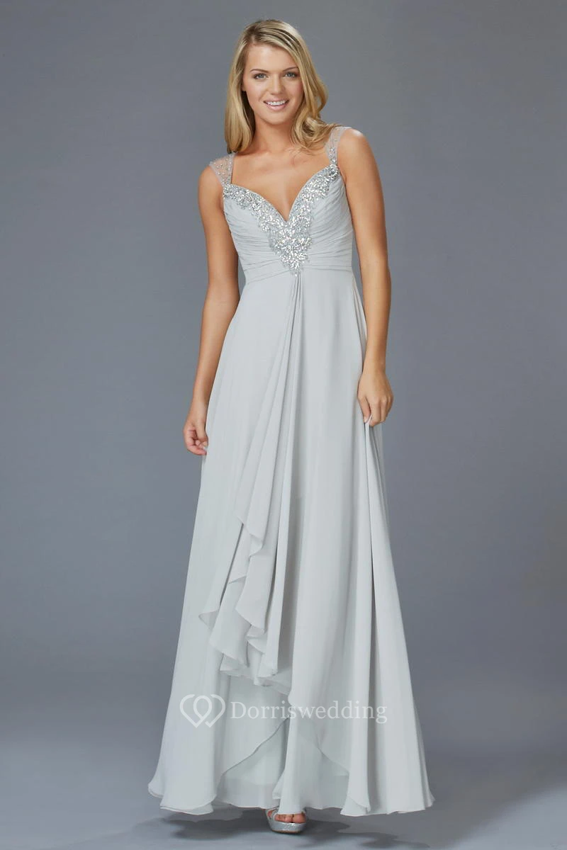 A-Line Long Queen Anne Chiffon Keyhole Dress With Beading And Draping