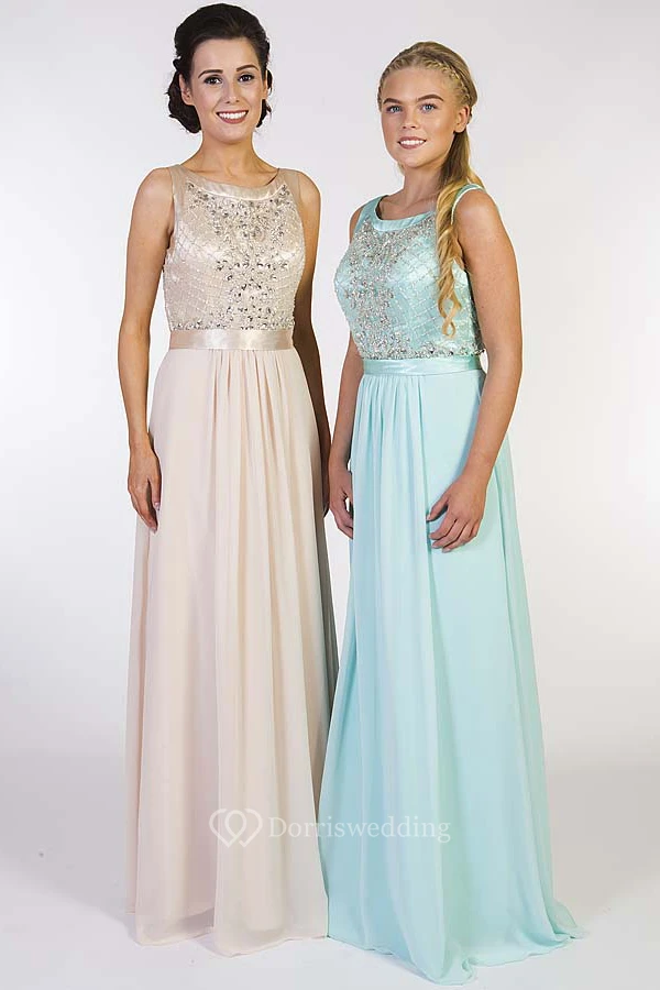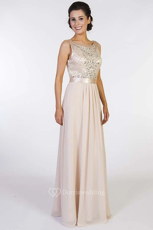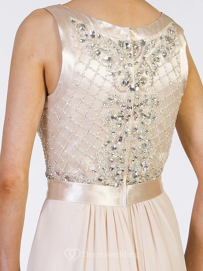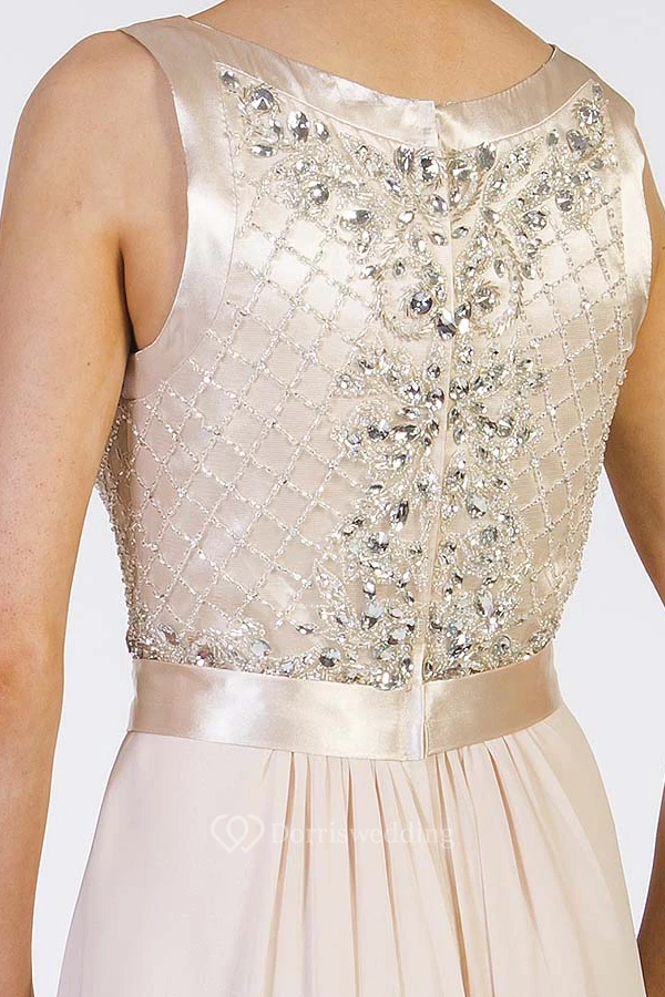 A-Line Long Scoop-Neck Beaded Sleeveless Chiffon Prom Dress