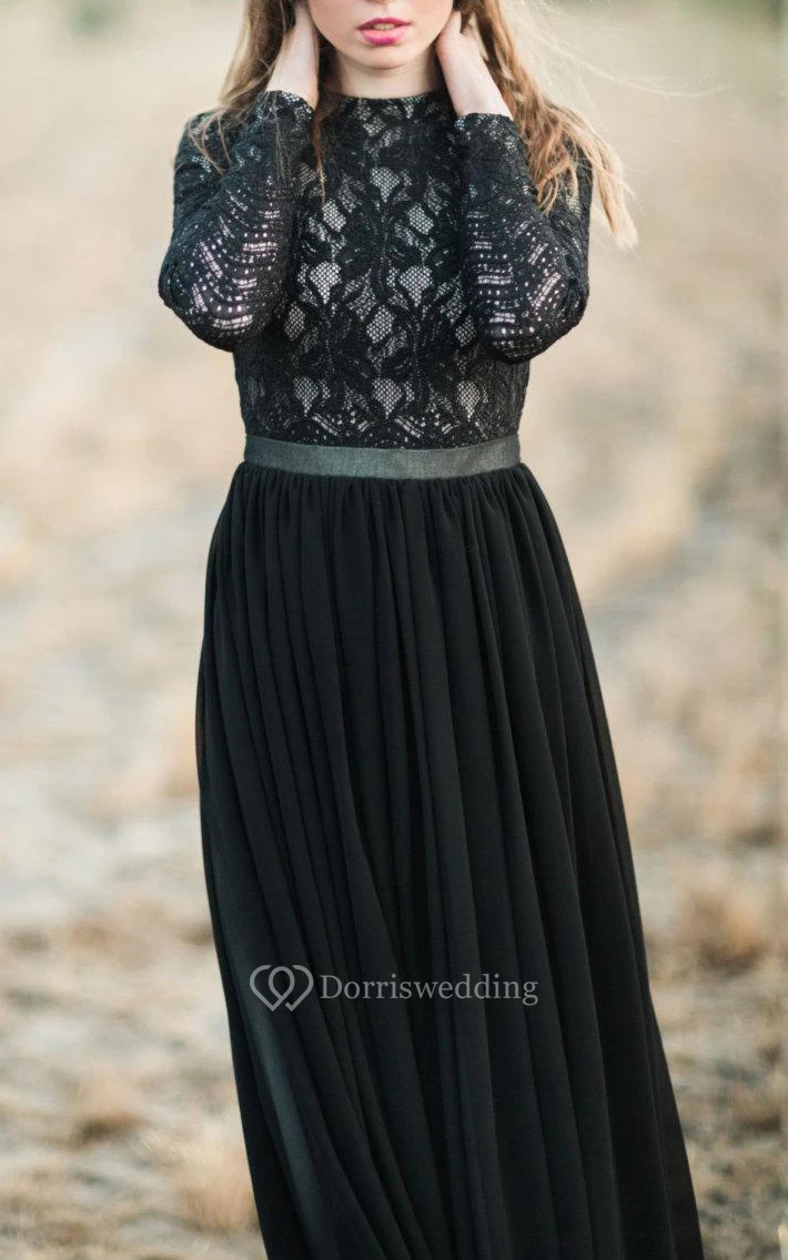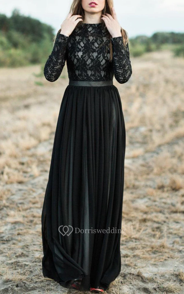 A-line Long Sleeve Chiffon&Lace Dress With Tiers
