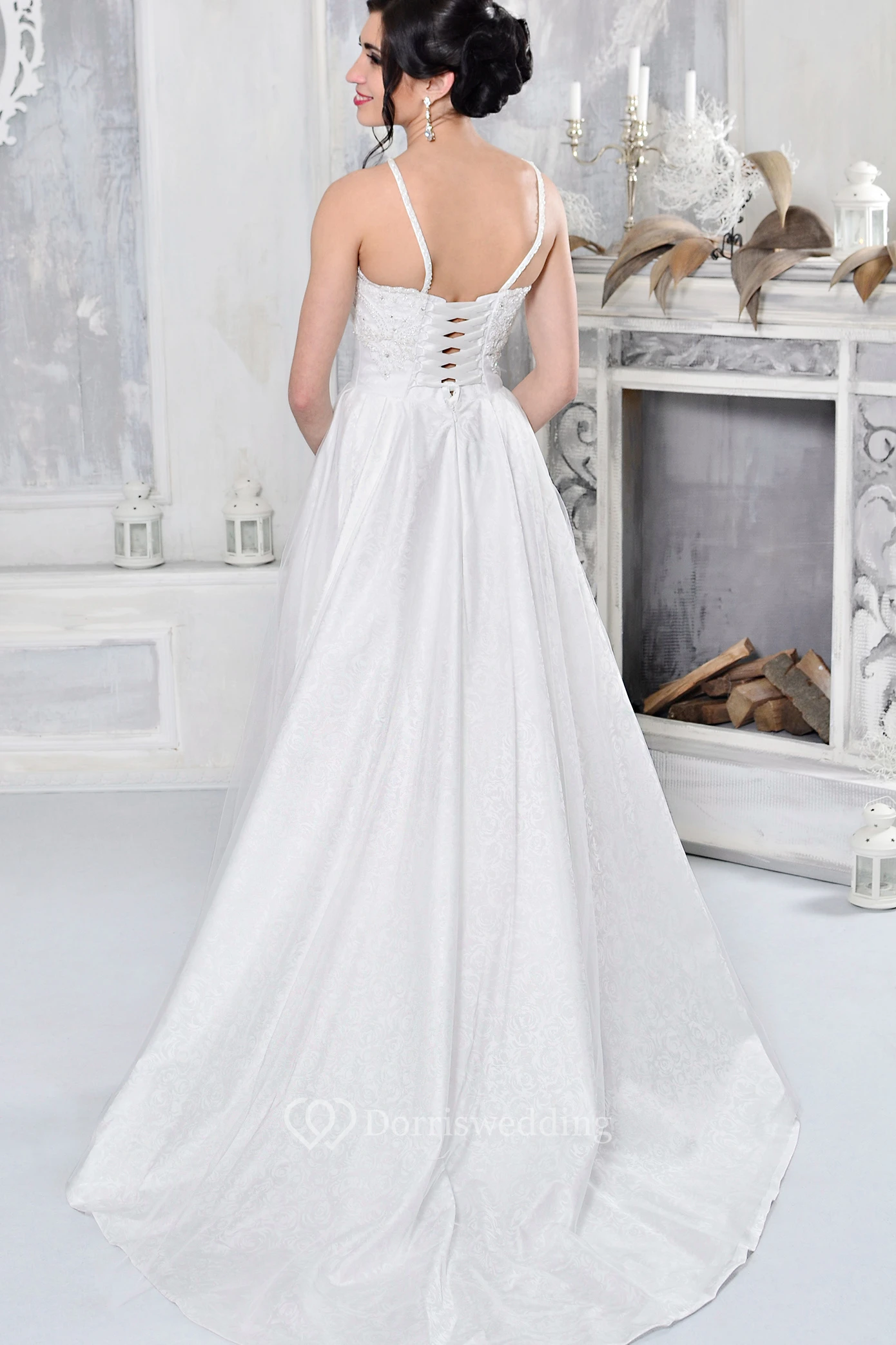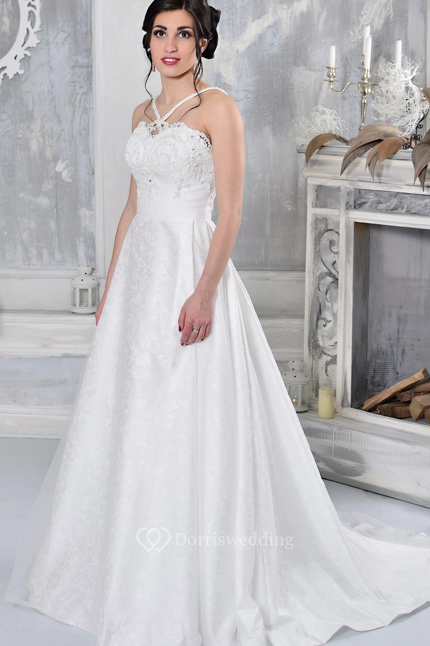 A-Line Long Sleeveless Appliqued Satin Wedding Dress