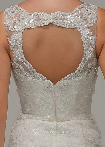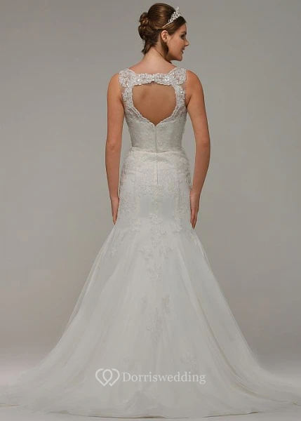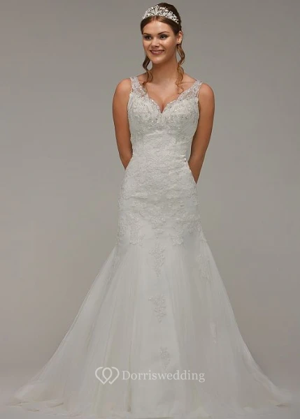 A-Line Long Sleeveless Appliqued V-Neck Lace&Tulle Wedding Dress With Beading