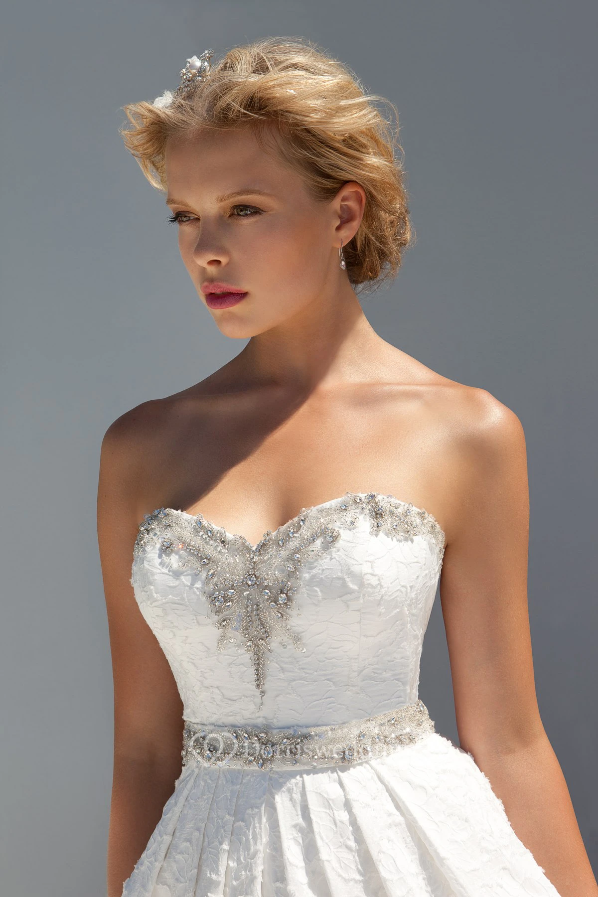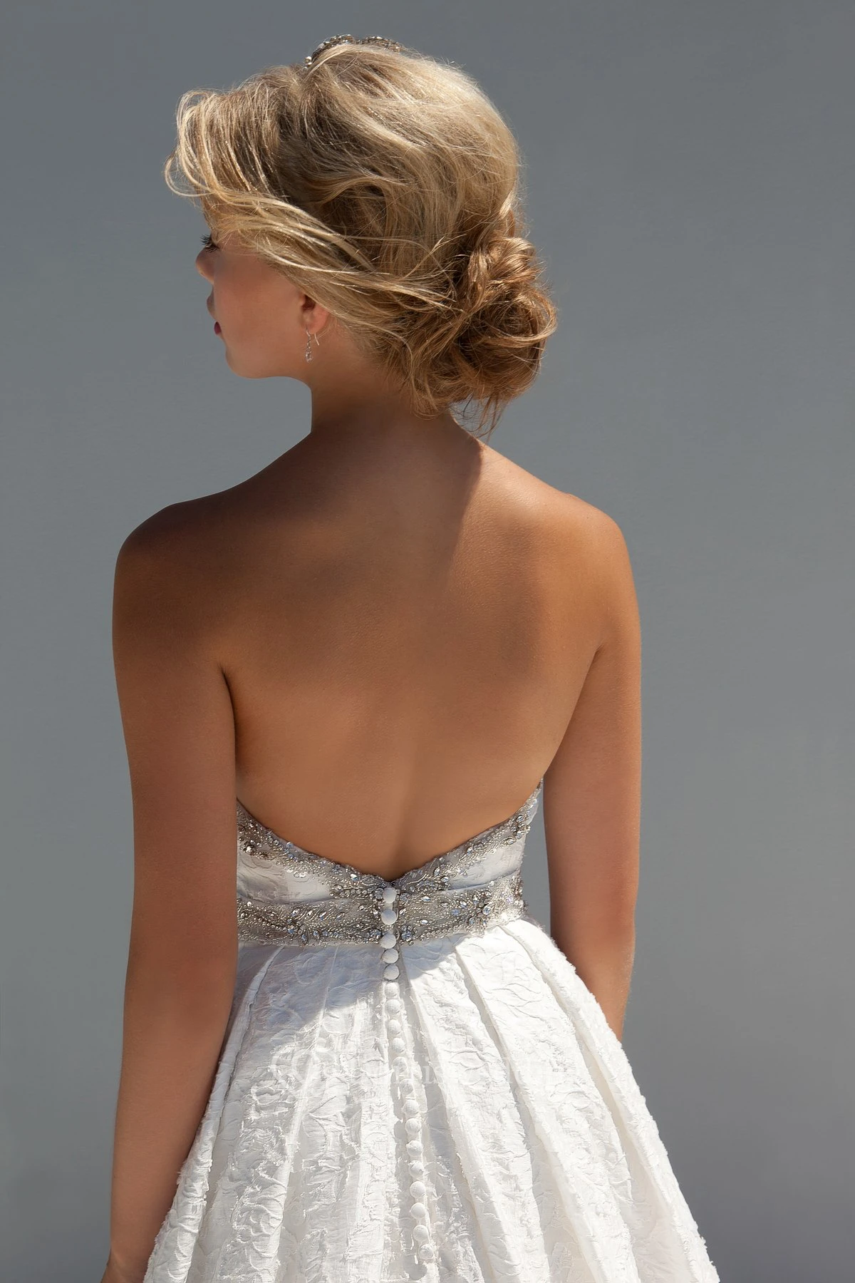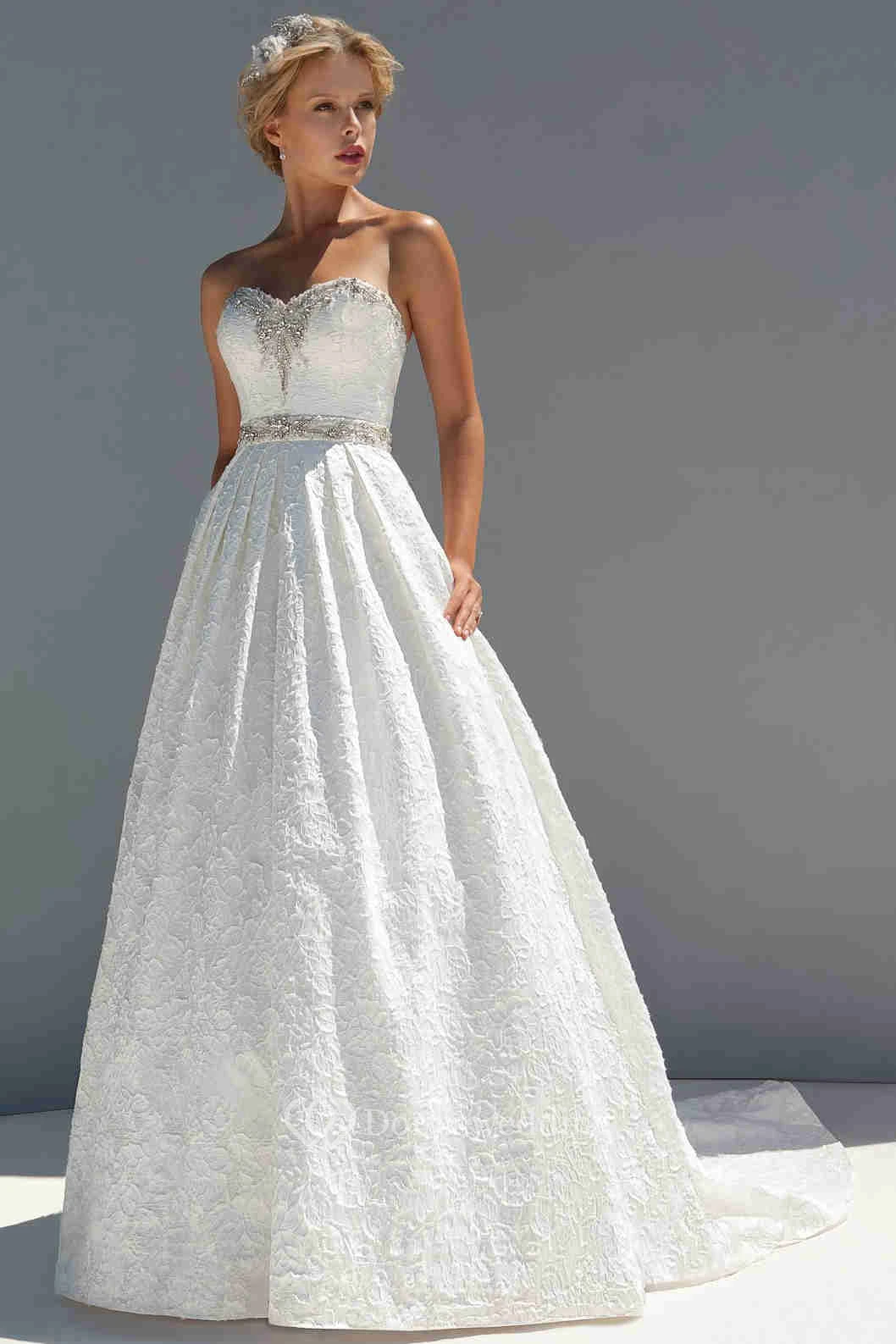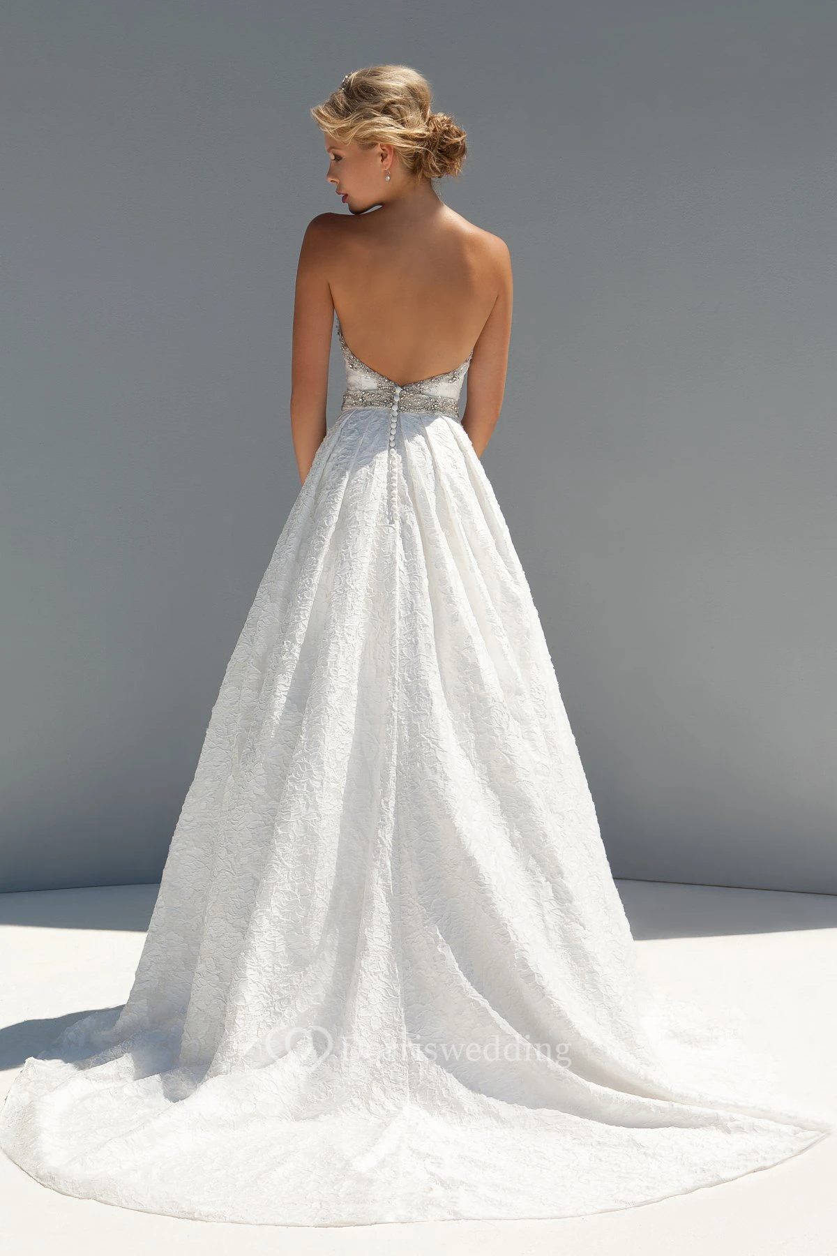 A-Line Long Sleeveless Sweetheart Appliqued Lace Wedding Dress With Waist Jewellery And Beading