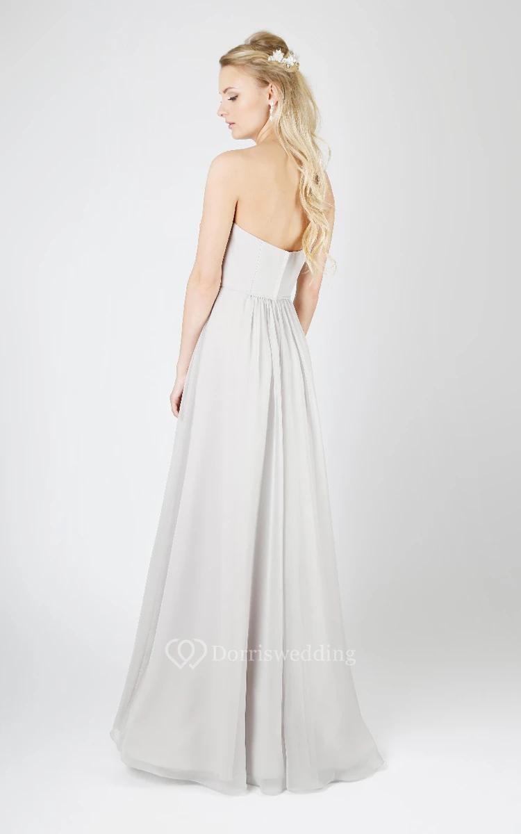 A-Line Long Strapless Dress With Has Cascading Ruffles