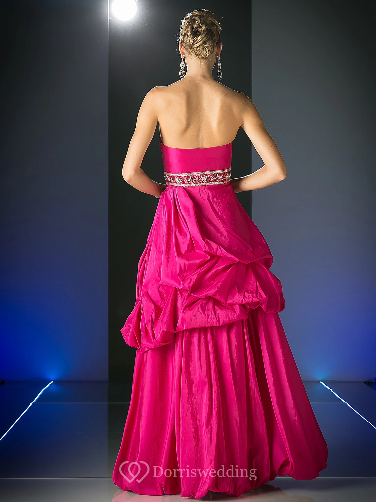 A-Line Long Strapless Sleeveless Taffeta Backless Dress With Pick Up And Flower