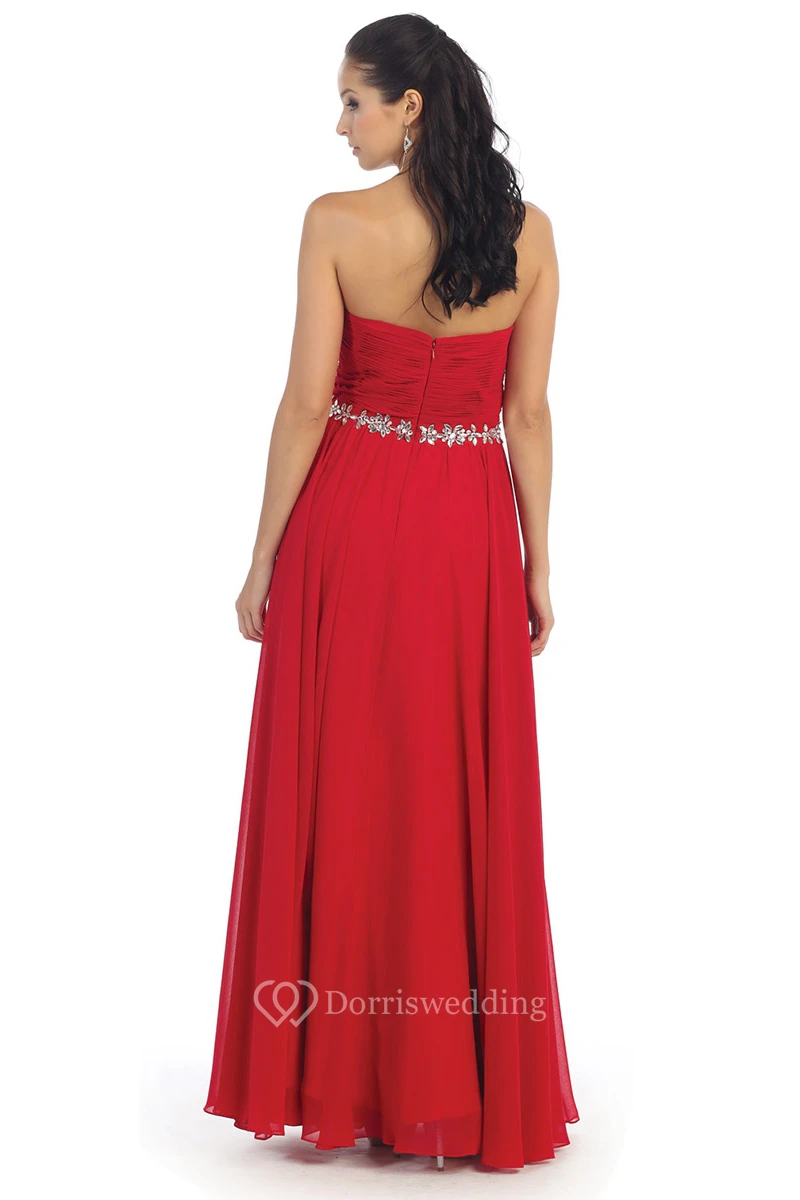 A-Line Long Sweetheart Chiffon Zipper Dress With Ruching And Waist Jewellery
