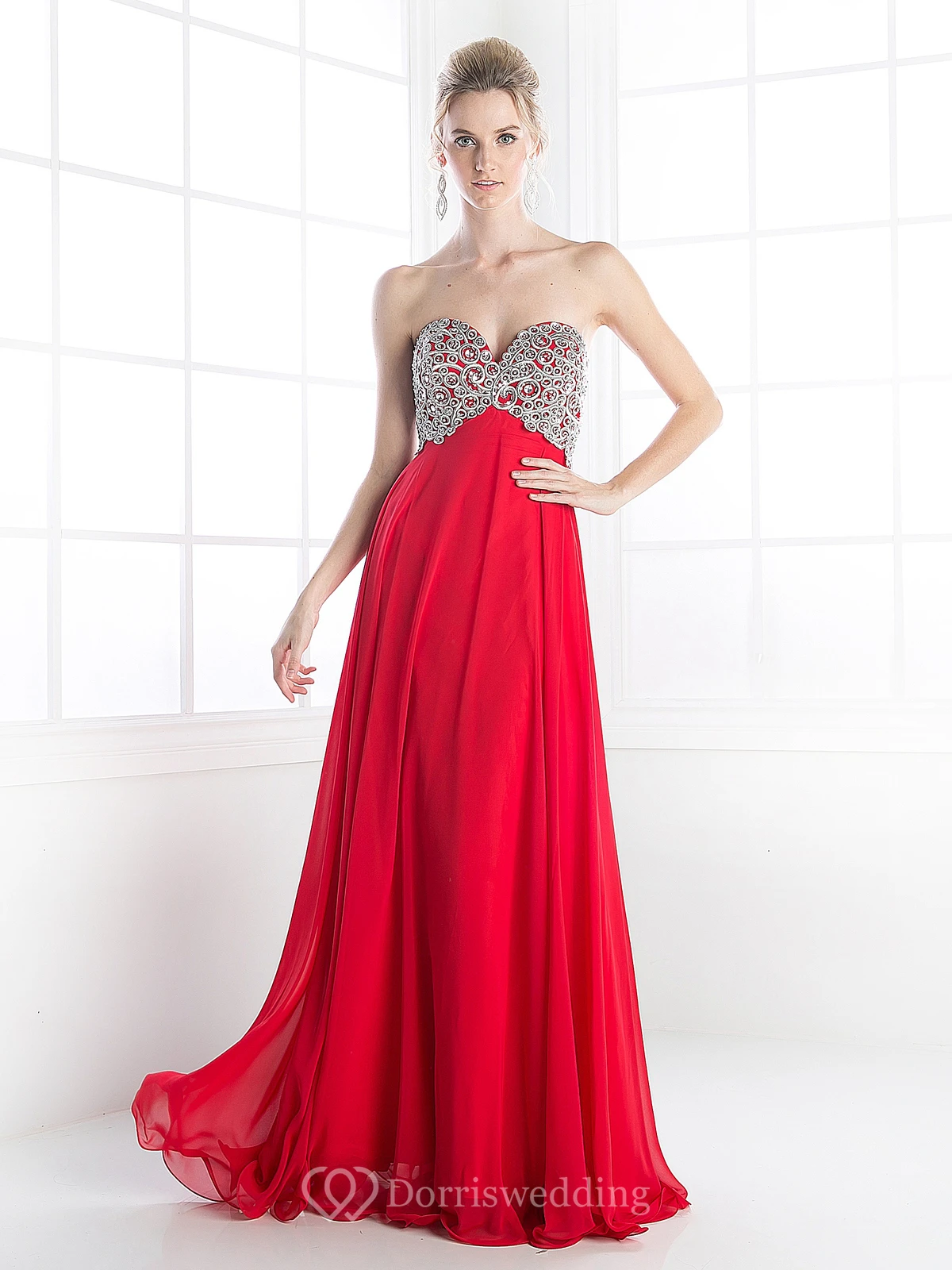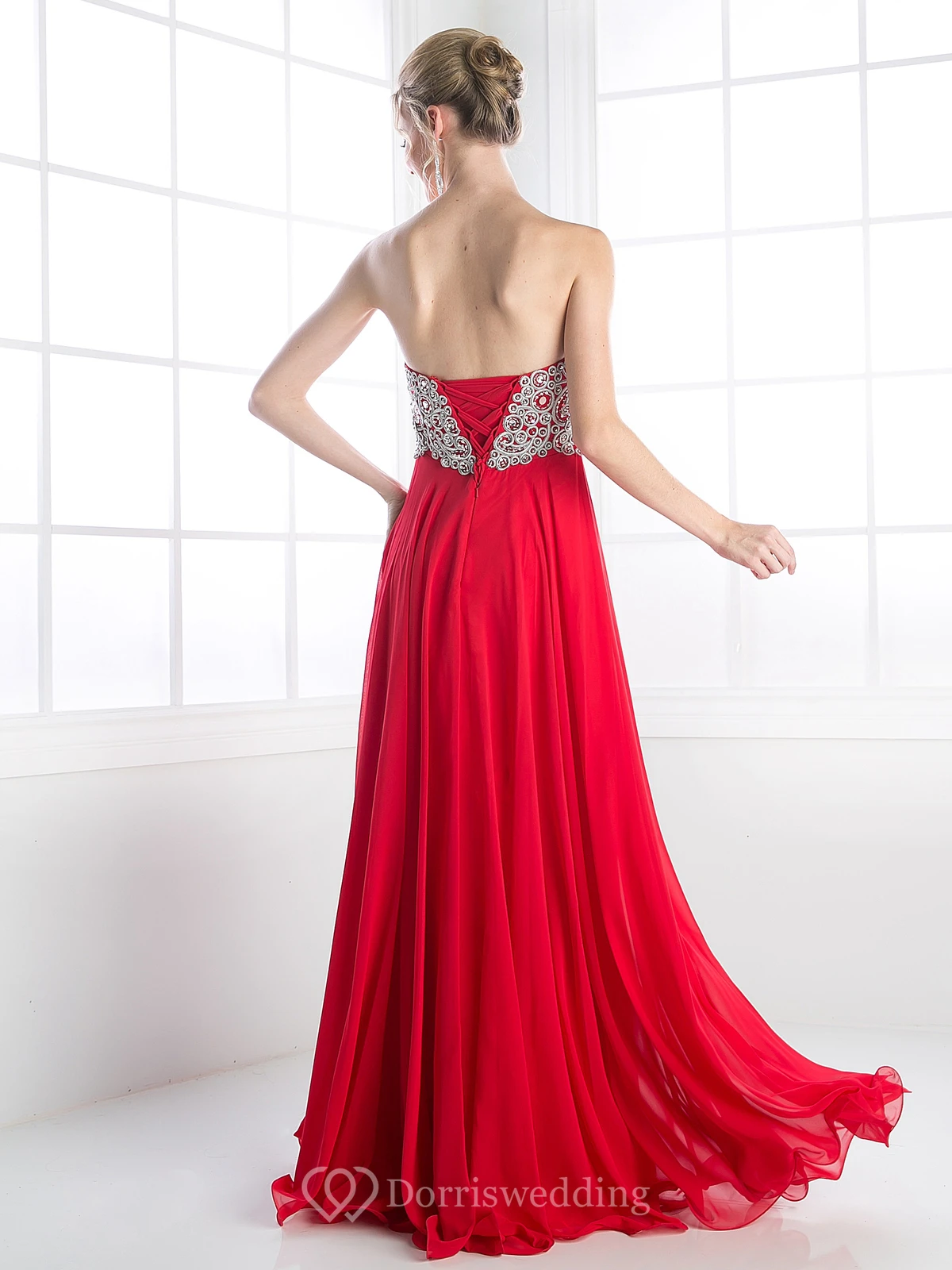 A-Line Long Sweetheart Empire Chiffon Lace-Up Dress With Beading And Pleats