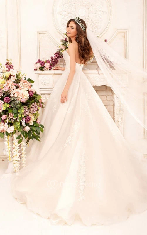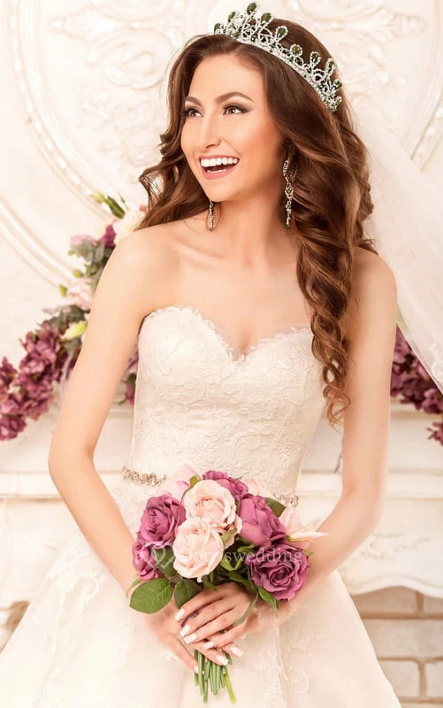 A-Line Long Sweetheart Sleeveless Backless Lace Dress With Appliques And Waist Jewellery