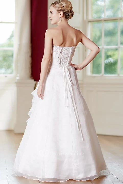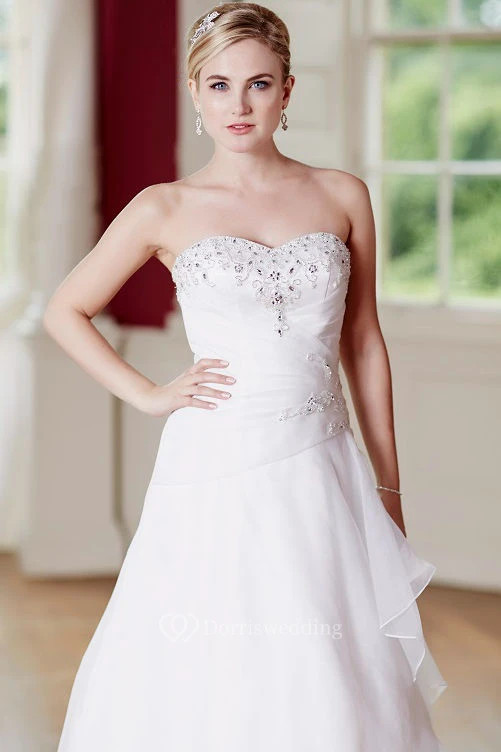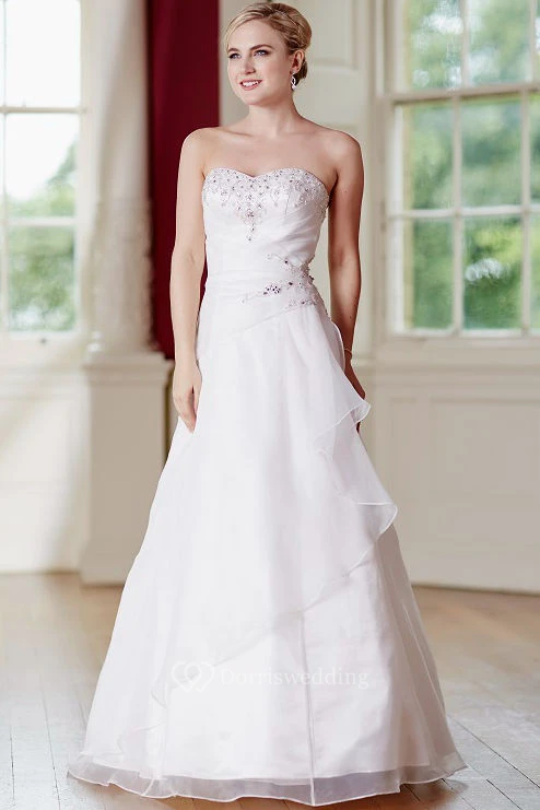 A-Line Long Sweetheart Sleeveless Beaded Organza Wedding Dress With Draping