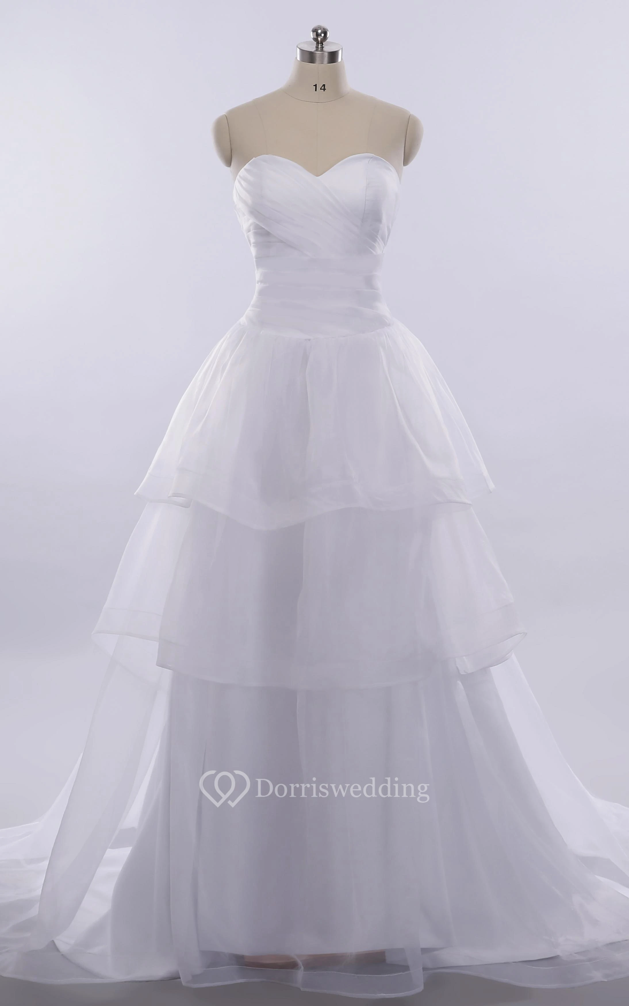 A-Line Long Sweetheart Sleeveless Bell Pleats Tiers Lace-Up Back Keyhole Tulle Lace Dress
