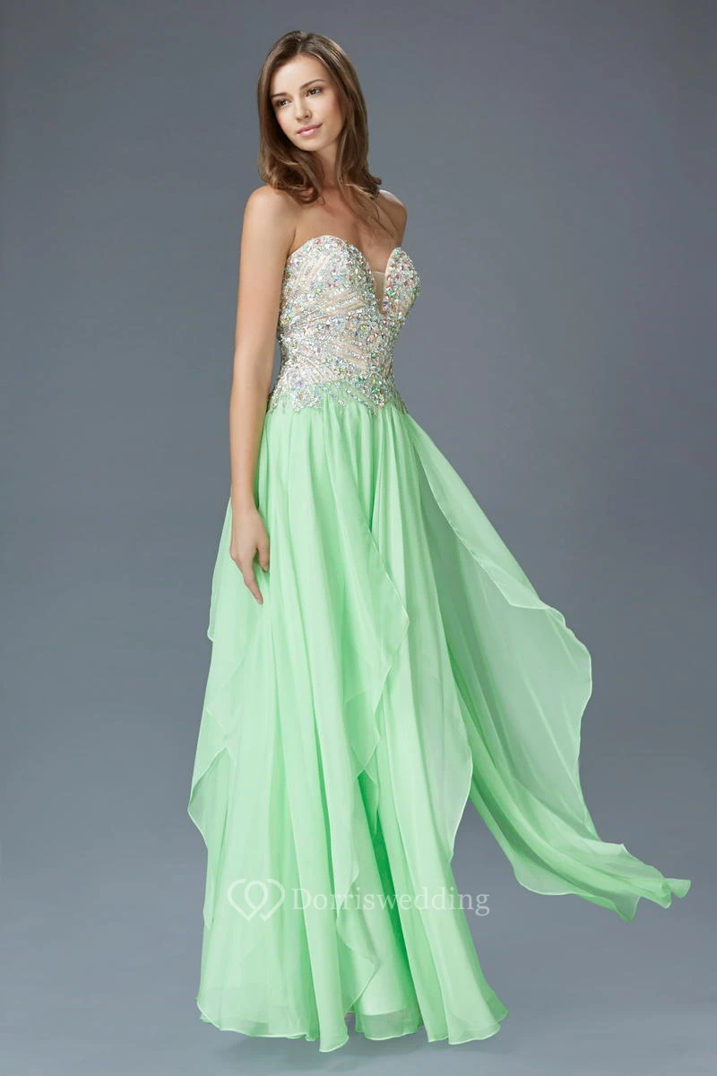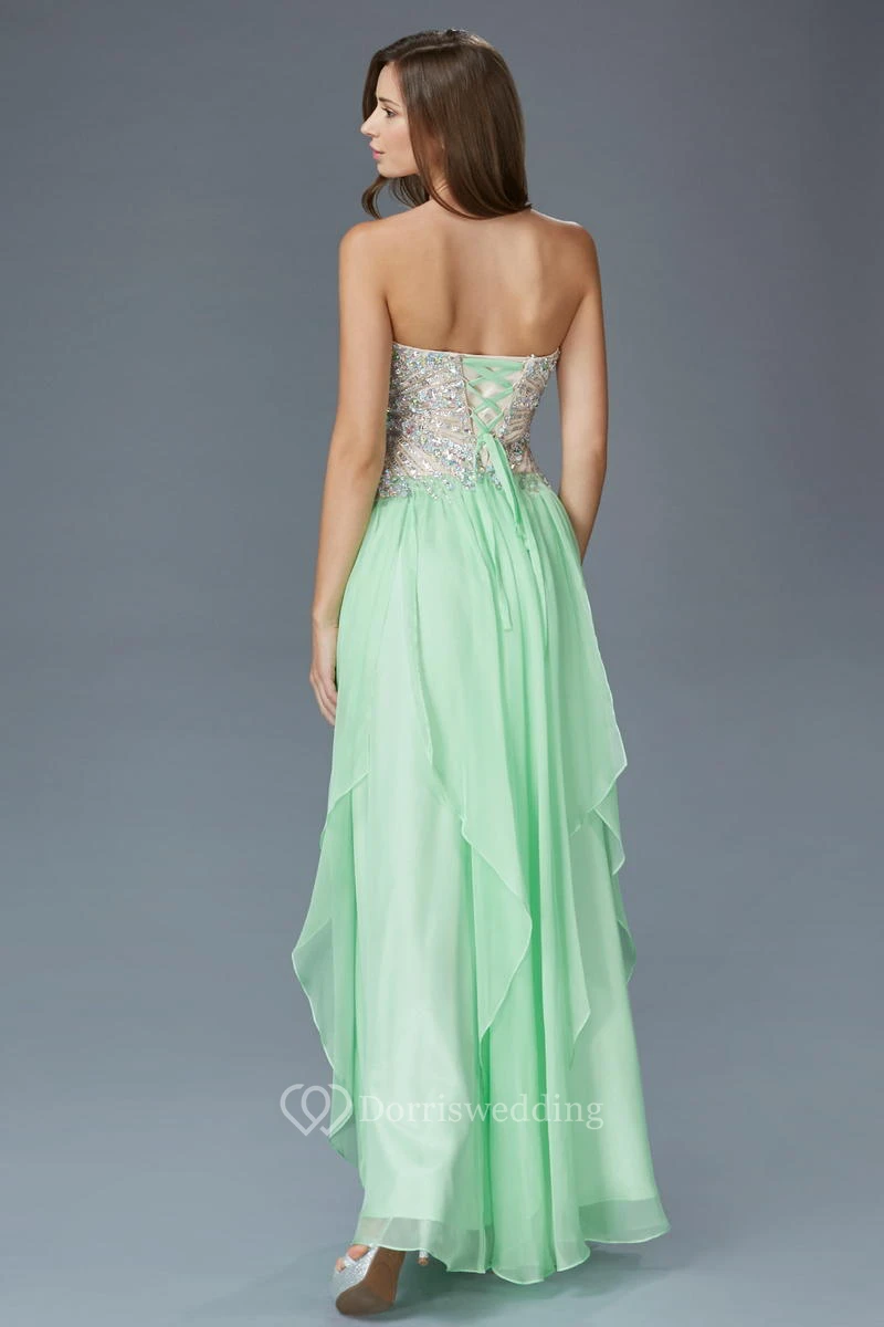 A-Line Long Sweetheart Sleeveless Chiffon Lace-Up Dress With Beading And Draping