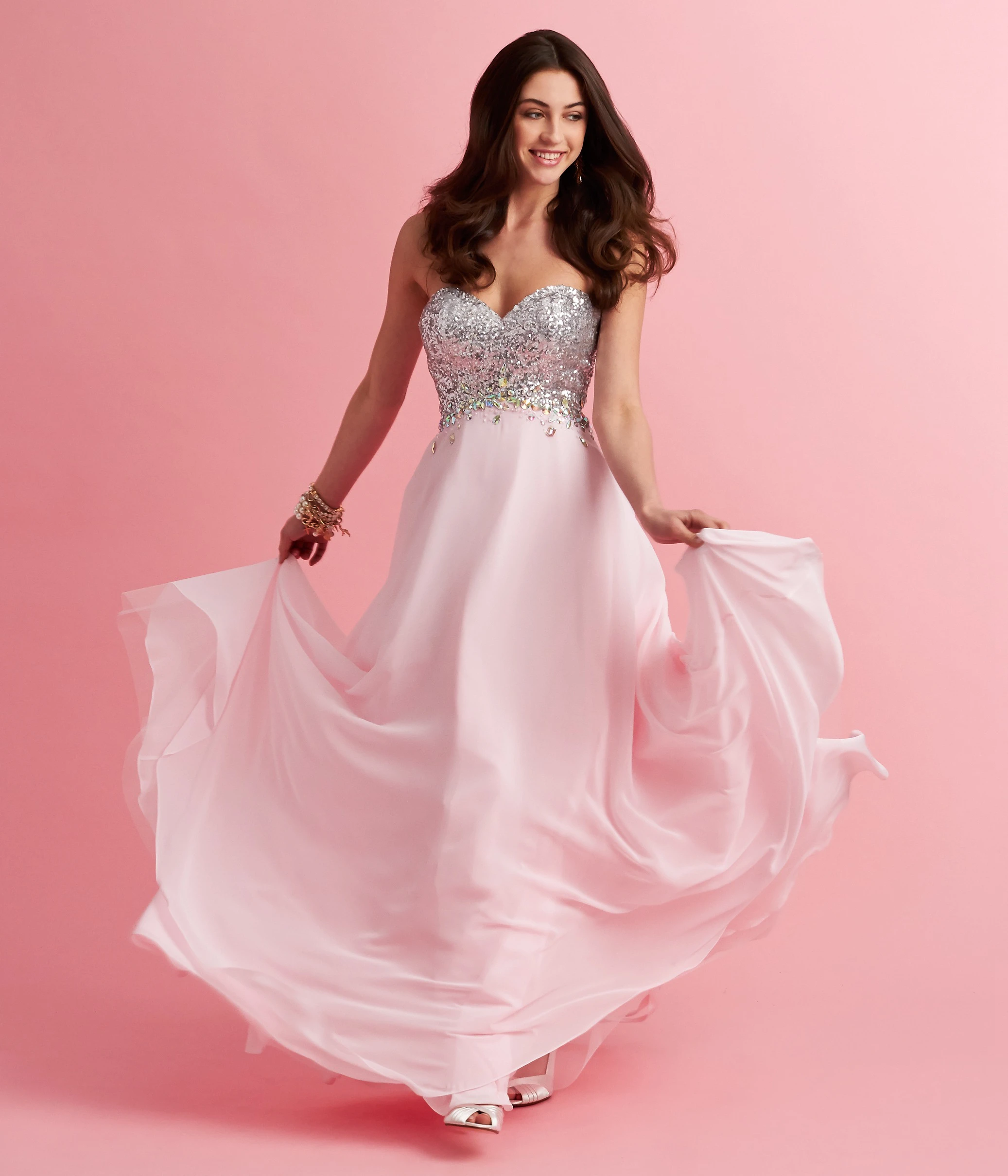 • Hemline/Train: Floor-length, Sweep/Brush Train