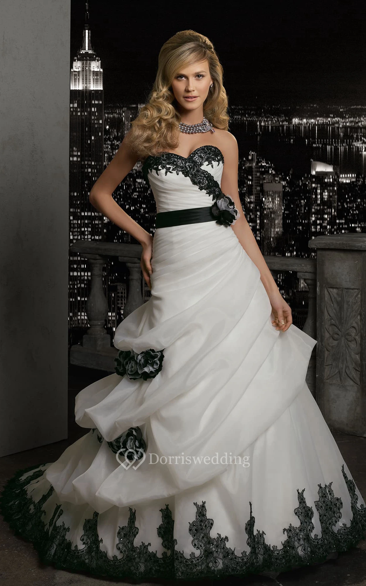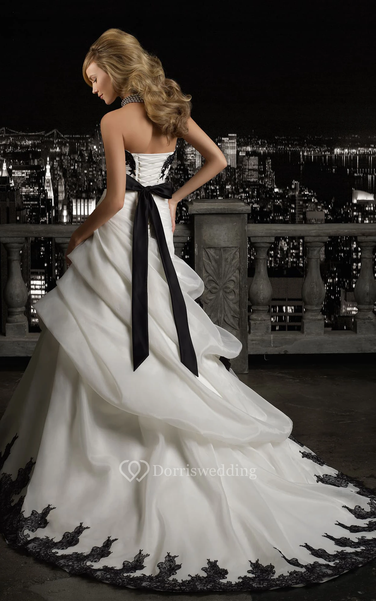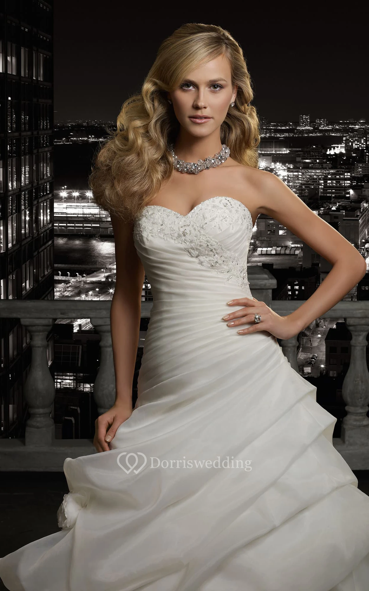 A-Line Long Sweetheart Sleeveless Lace-Up Organza Dress With Lace And Pick Up