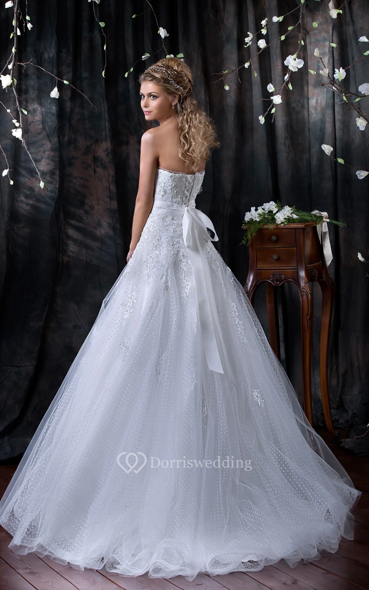 • Hemline/Train: Floor-length, Sweep/Brush Train