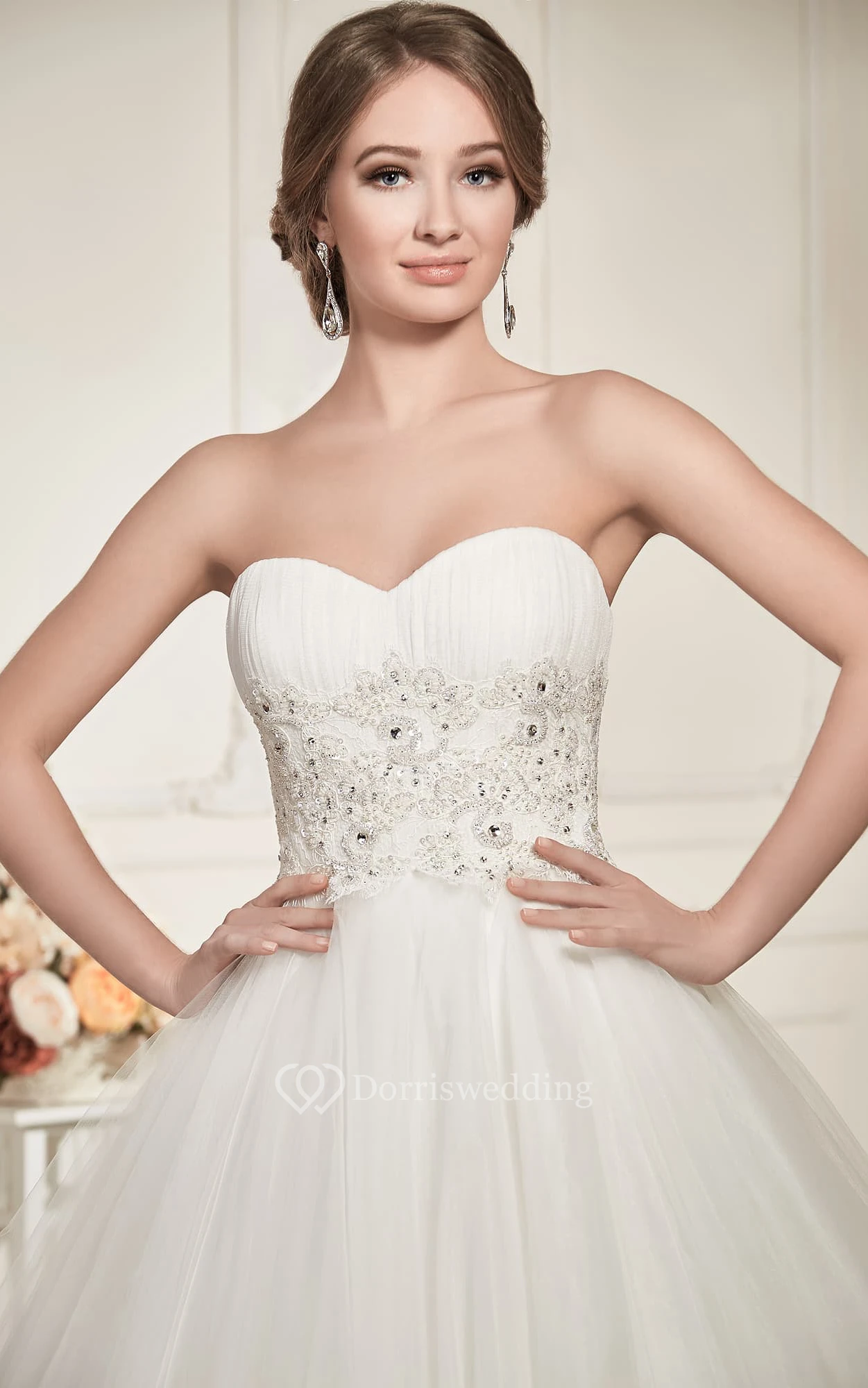 A-Line Long Sweetheart Sleeveless Zipper Tulle Dress With Ruching And Beading
