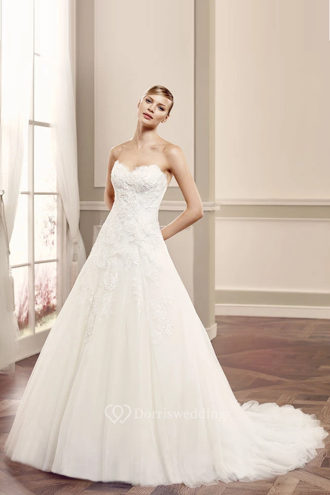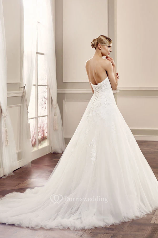 A-Line Long Sweetheart Tulle Wedding Dress With Appliques And Corset Back