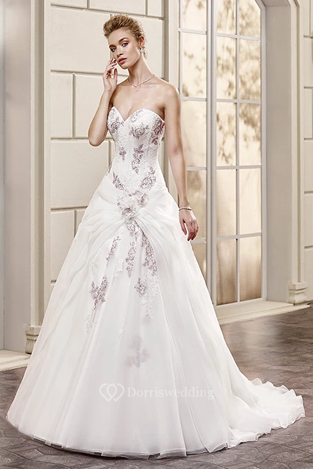 A-Line Long Sweetheart Tulle Wedding Dress With Appliques And Draping