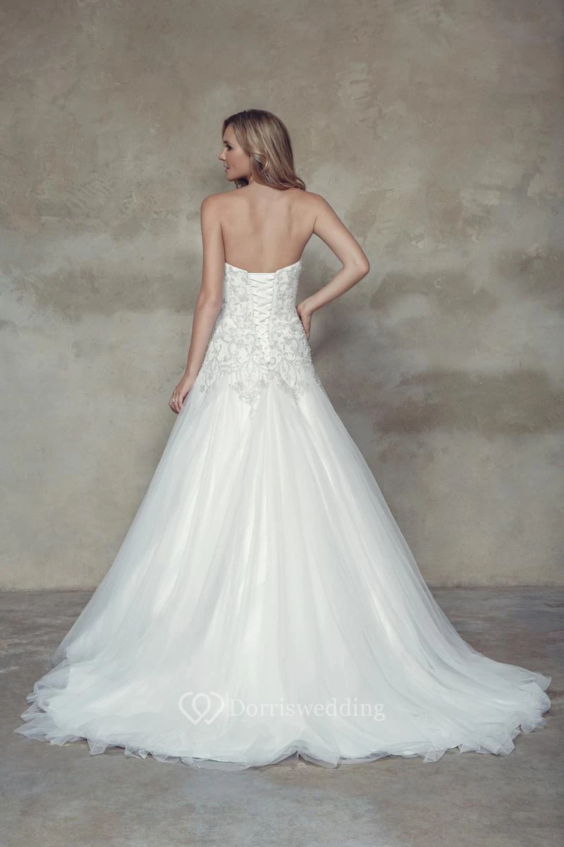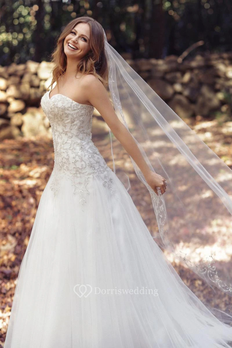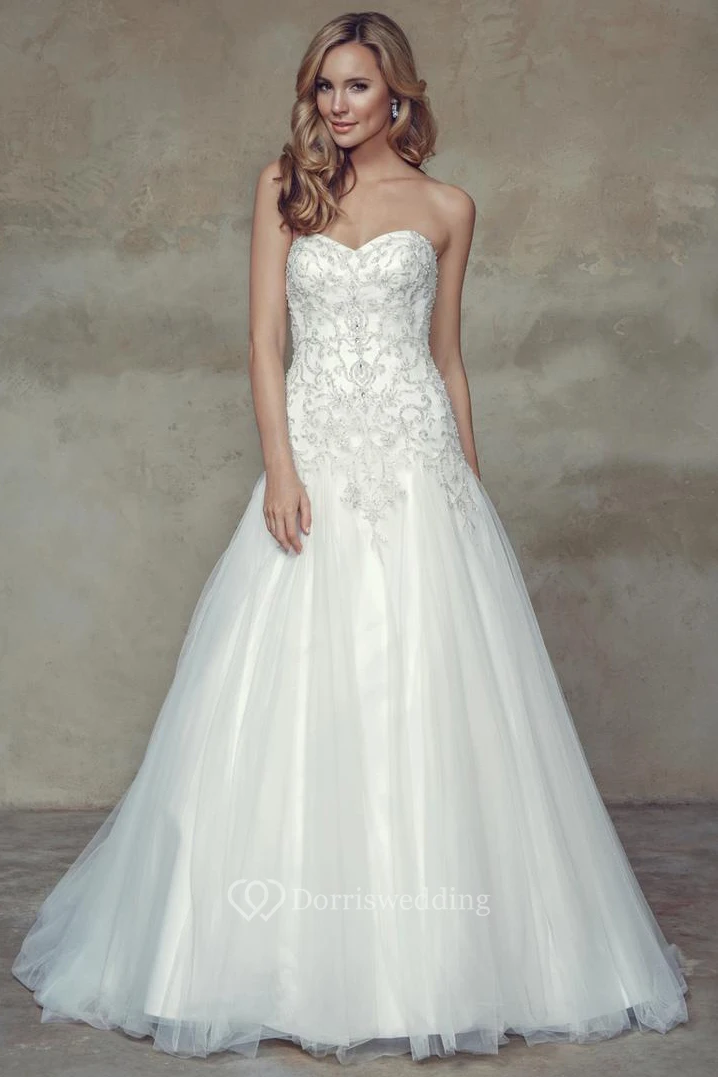 A-Line Long Sweetheart Tulle Wedding Dress With Crystal Detailing And Corset Back
