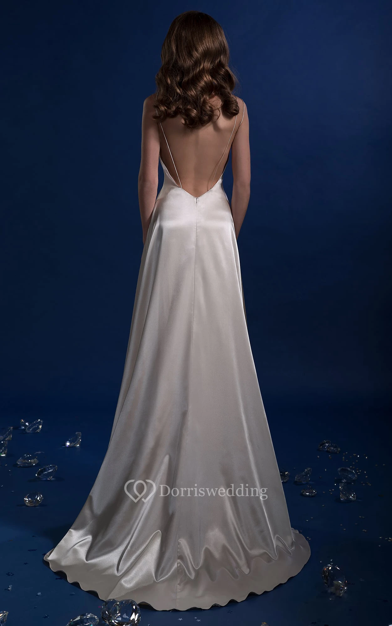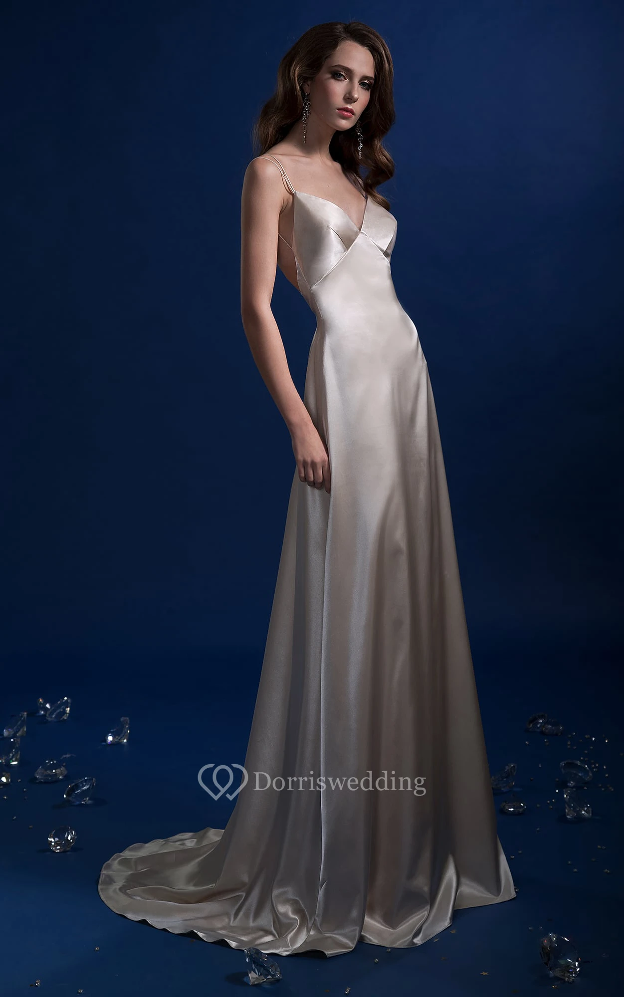 A-Line Long V-Neck Sleeveless Backless Satin Dress